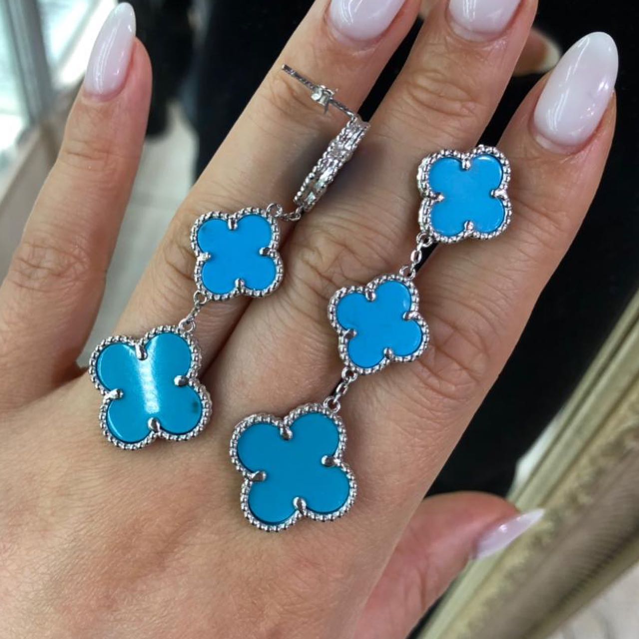 Эти изящные длинные серьги LUX-45827 в стиле "клевер" от бренда Luxe Crime станут эффектным дополнением к вашему образу. Яркий бирюзовый цвет вставок прекрасно гармонирует с серебристым металлическим ободком, создавая изысканное сочетание. Серьги отлично подойдут для особых случаев, добавляя нотку шика и элегантности.