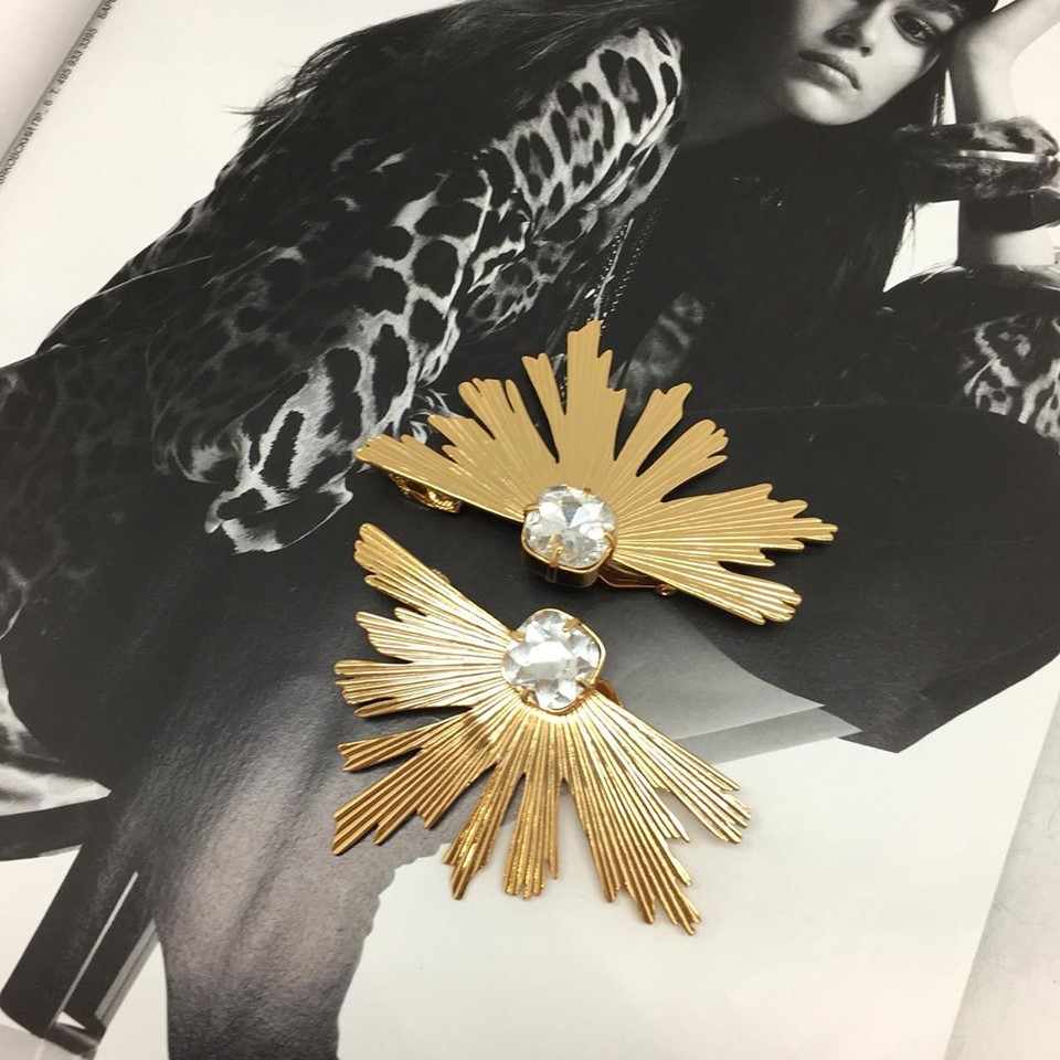 Серьги LUX-14485 от бренда LUXE-CRIME — это эффектные украшения, выполненные в стиле арт-деко. Золотистый металлический корпус с лучеобразным дизайном напоминает солнечные лучи или веер, а центральный прозрачный кристалл добавляет блеска и элегантности. Эти серьги станут ярким акцентом любого образа, подчеркивая изысканный вкус обладательницы.
