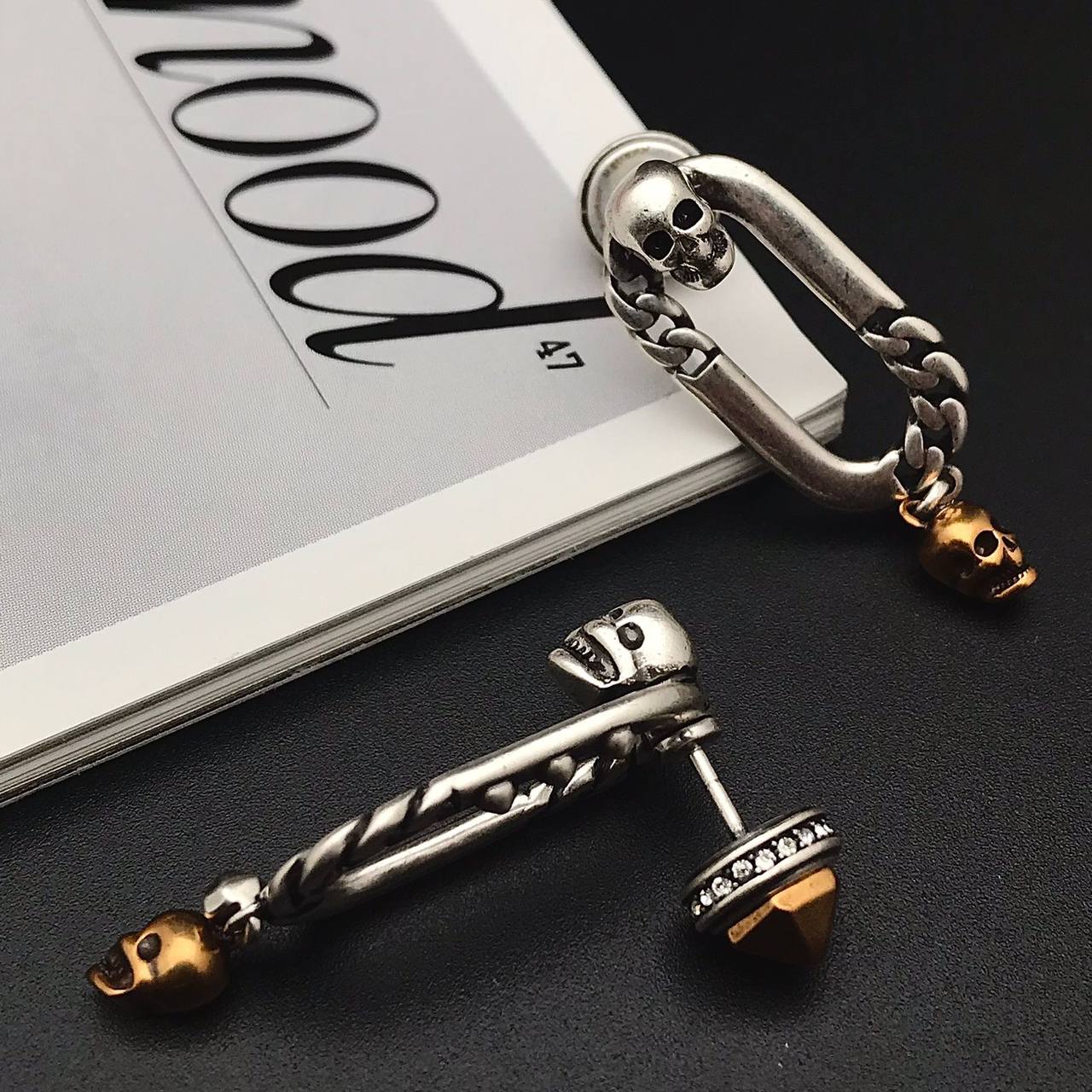 Серьги Alexander McQueen LUX-92473 – это выразительное украшение, выполненное в готическом стиле. Серьги представляют собой сочетание серебристого и золотистого цветов, с деталями в виде черепов, создавая дерзкий и узнаваемый образ. Эти серьги идеально подойдут для тех, кто хочет добавить акцент в свой образ.