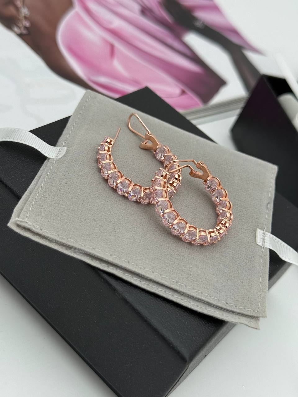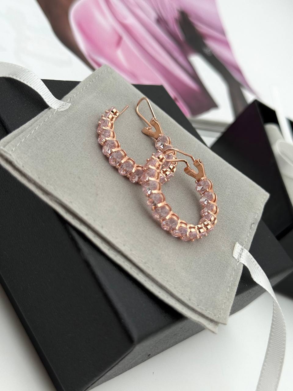 Серьги LUX-122188 – элегантный аксессуар, который придаст вашему образу изысканность. Эти серьги-кольца с нежными розовыми вставками прекрасно подойдут для создания романтичного и женственного стиля.