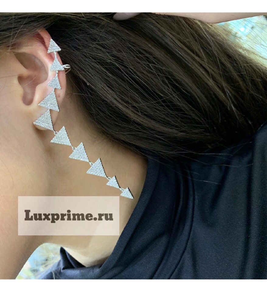 Эти эффектные серьги ЮУ-019 бренда Luxe prime станут изысканным дополнением к вечернему или коктейльному образу. Их геометрический дизайн в виде каскада серебристых треугольников, усыпанных мелкими камнями, придает им особую элегантность и утонченность. Серьги будут прекрасно смотреться с открытыми вечерними нарядами, подчеркивая изящность шеи и линии уха.