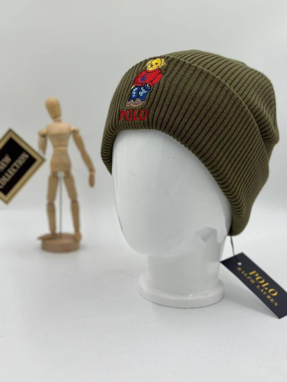 Шапка POLO Ralph Lauren. Эта шапка, представленная в классическом стиле, выполнена в оливковом цвете и имеет текстуру в рубчик. Она украшена вышитым логотипом медведя спереди и идеально подходит для повседневной носки в холодное время года.