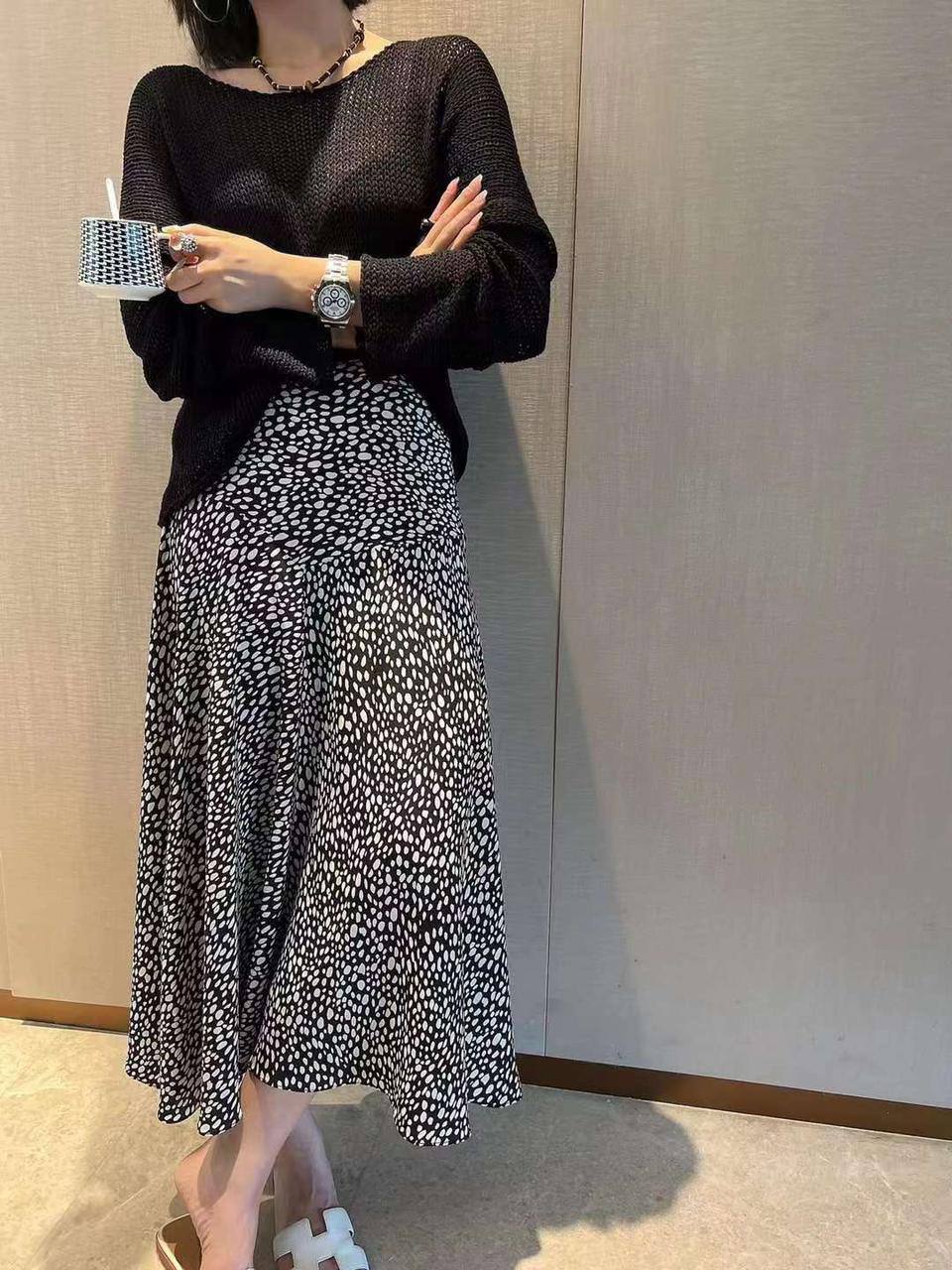 Шелковая юбка LUX-108040 - это элегантная юбка, которая станет прекрасным дополнением к вашему гардеробу. Юбка выполнена в черно-белой гамме с оригинальным принтом. Юбка имеет универсальный крой и подходит для различных образов.