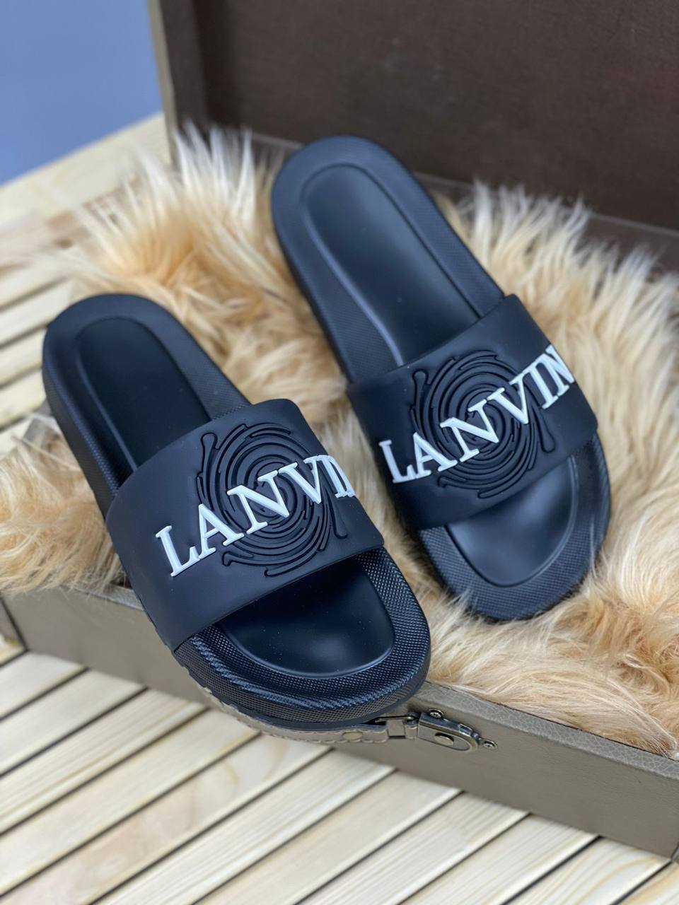 Стильные шлёпанцы LANVIN LUX-68379 – идеальный выбор для тех, кто ценит комфорт и модный дизайн. Эти шлёпанцы выполнены в лаконичном чёрном цвете и украшены узнаваемым логотипом бренда. Прекрасно подойдут для повседневной носки, отдыха на пляже или прогулок в тёплую погоду.