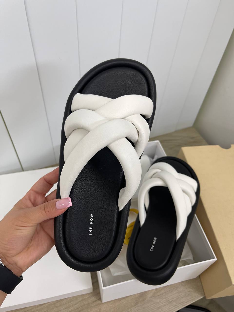 Шлёпанцы The Row LUX-92219 – это стильная летняя обувь с минималистичным дизайном, сочетающая в себе элегантность и комфорт. Шлёпанцы выполнены в белом и черном цветах, их мягкие переплетенные ремешки и черная подошва создают гармоничный контраст. Эта модель идеально подойдет для повседневной носки, прогулок по городу и отдыха.