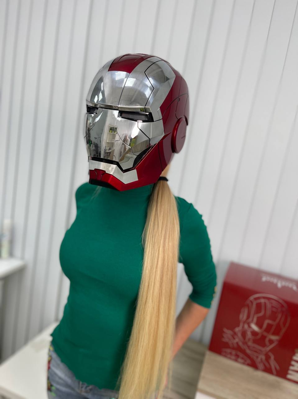 Шлем LUX-66733 — это стильный аксессуар, вдохновленный образом Железного человека. Дизайн шлема выполнен в футуристическом стиле, сочетая в себе яркий красный цвет с блестящими серебристыми вставками. Он идеально подойдет для косплея, тематических вечеринок или как элемент коллекции для фанатов супергероев.