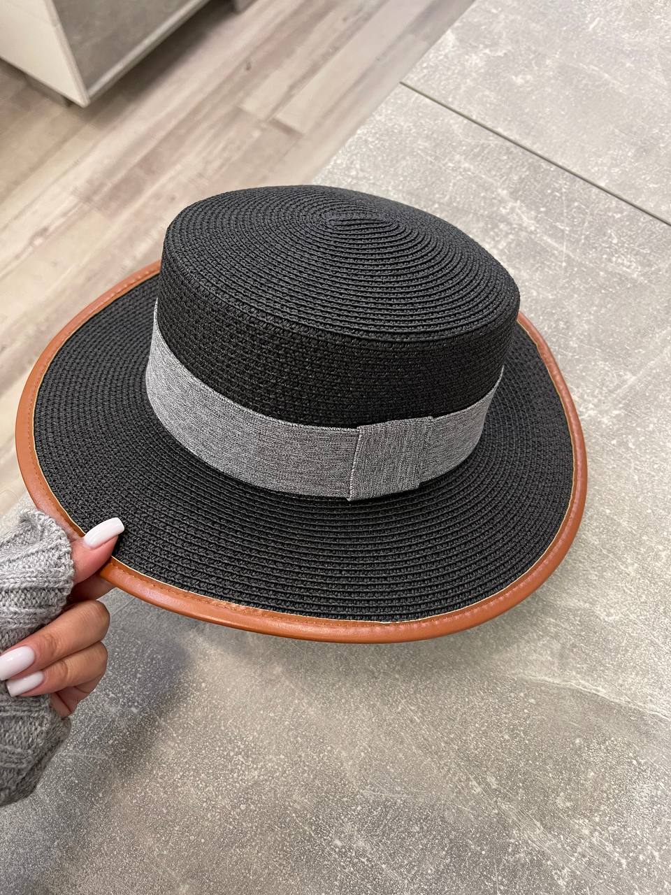 Шляпа LUX-106416 - это стильный аксессуар, который сочетает в себе элегантность и функциональность. Шляпа выполнена в черном цвете с коричневой окантовкой и серым лентой. Она прекрасно дополнит любой летний образ, добавив ему изысканности.