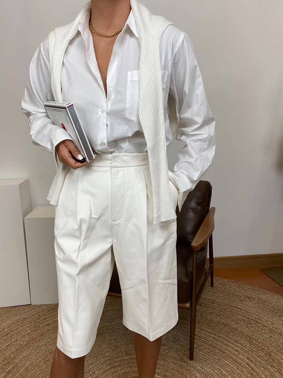 Шорты LUX-49737 от LUXE-CRIME представляют собой элегантную модель в стиле smart casual. Белый цвет и лаконичный дизайн делают их универсальным элементом гардероба. Классический крой с защипами и высокой талией подчеркивает фигуру, а длина до колена обеспечивает комфорт и свободу движений. Эти шорты прекрасно подойдут как для повседневных образов, так и для более формальных выходов.