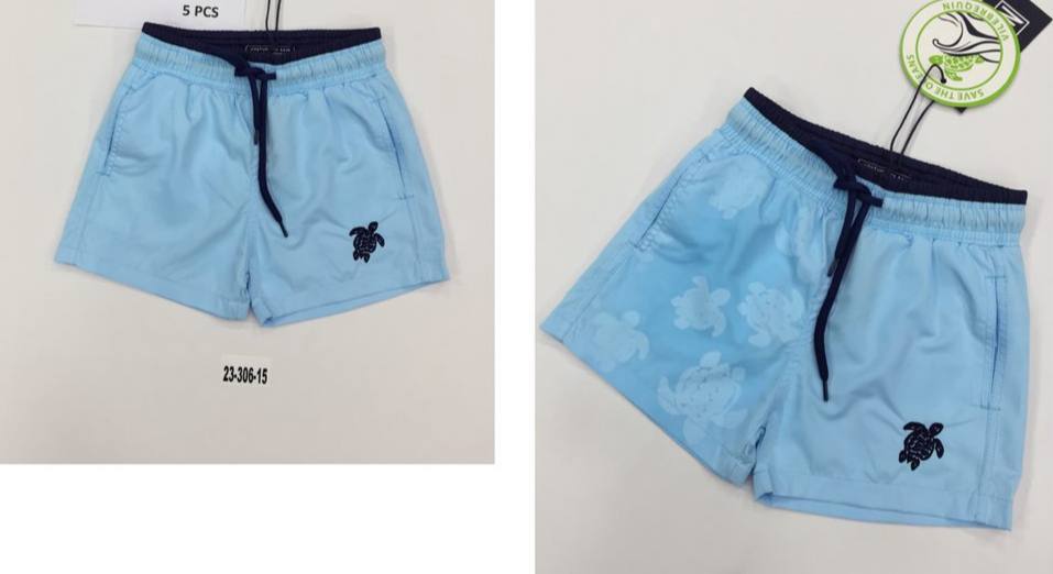 Шорты для плавания LUX-85292 – это летние шорты для плавания, выполненные в светло-голубом цвете. Шорты украшены вышитым изображением морской черепахи и белым рисунком черепах.