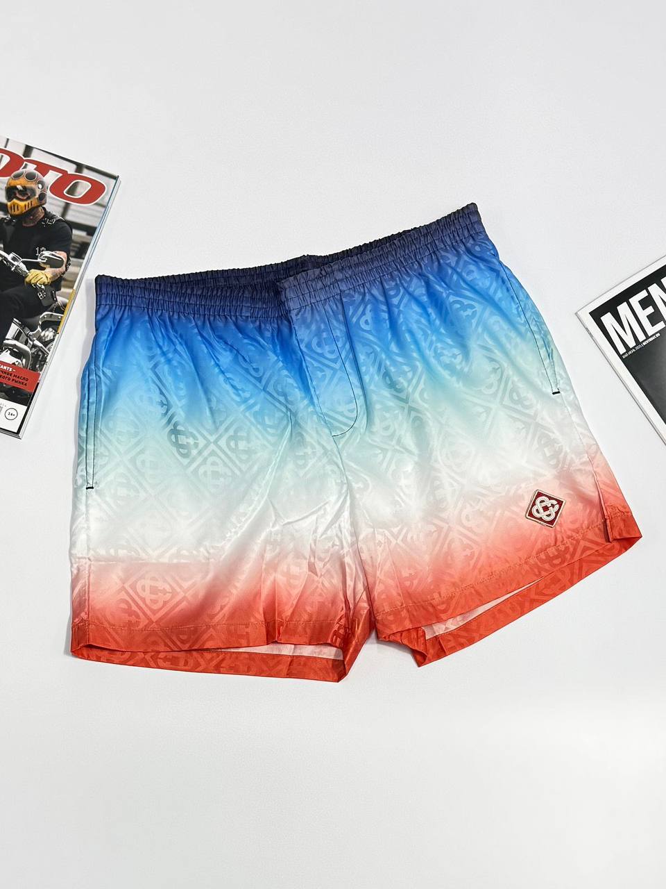 Шорты для плавания Casablanca LUX-120438 – стильный выбор для летнего отдыха. Яркий градиент и узор делают их запоминающимися, а короткий крой обеспечивает комфорт и свободу движений.