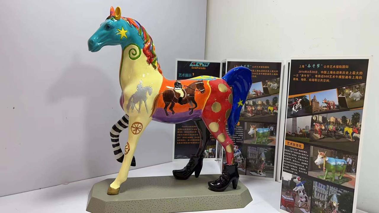 Статуэтка 31 см LUX-100022 - это яркое произведение искусства в форме лошади, украшенной красочными узорами и деталями. Она выполнена в стиле CowParade, известном своими необычными статуэтками. Лошадь одета в сапоги на каблуках, что добавляет ей экстравагантности.