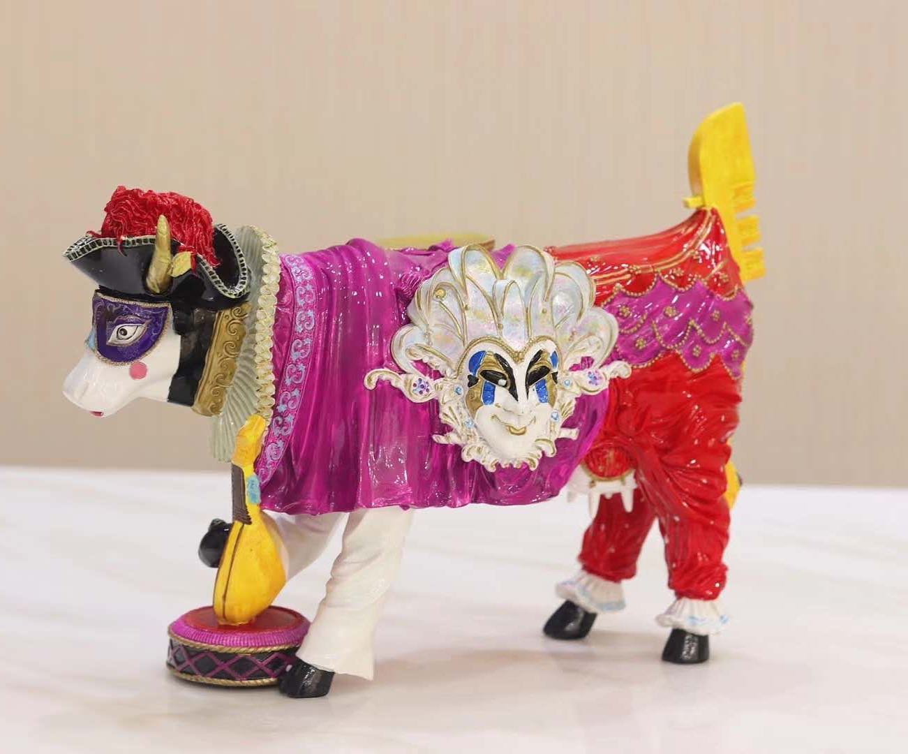 Эта яркая и оригинальная статуэтка LUX-39826, выполненная в стиле венецианского карнавала, привнесет в ваш интерьер нотку праздника и загадочности. Декоративная фигурка коровы, одетой в костюм шута с маской и держащей лютню, станет эффектным акцентом и предметом восхищения. Идеально подойдет для создания уникальной атмосферы в гостиной, кабинете или в качестве подарка для ценителей необычных предметов декора.