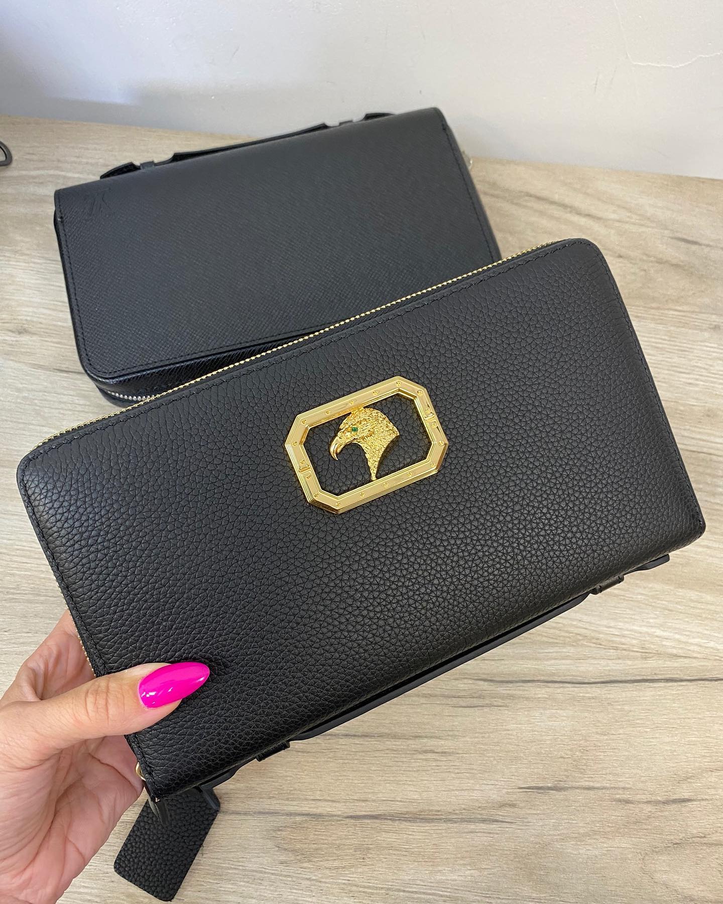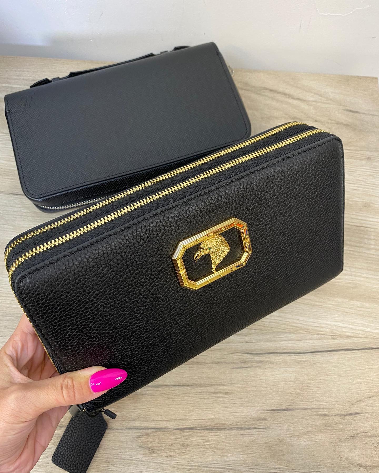 Этот элегантный клатч Stefano Ricci LUX-34801 выполнен в классическом черном цвете и украшен эффектной золотистой фурнитурой с изображением орла. Модель отличается лаконичным дизайном и премиальными материалами, что делает ее идеальным аксессуаром для создания изысканных вечерних или деловых образов. Вместительный, но компактный, он подходит для хранения личных вещей.