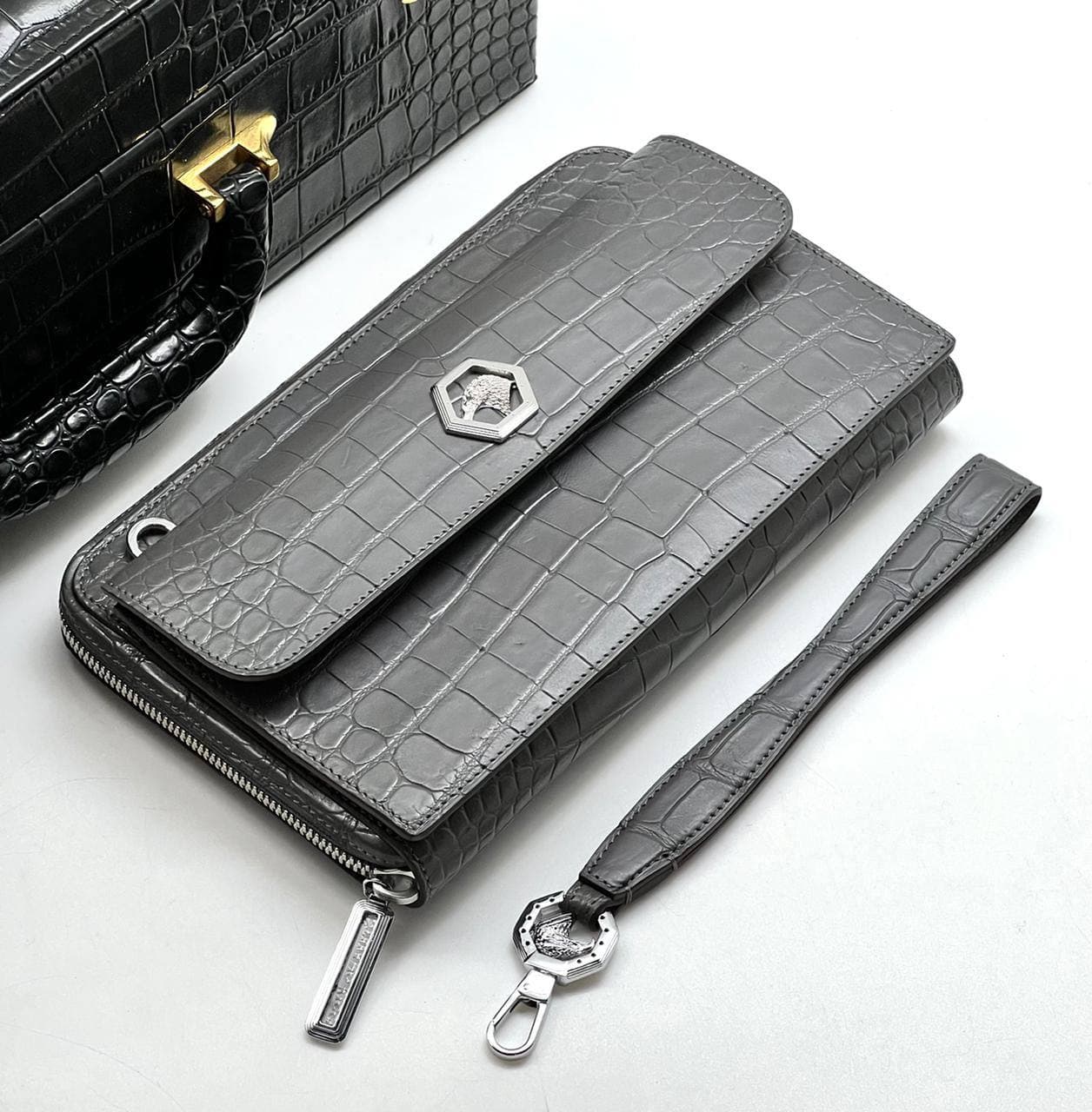 Клатч Stefano Ricci LUX-59893 представляет собой изысканный аксессуар, выполненный в элегантном стиле. Его фактура под кожу крокодила и серебристая фурнитура подчеркивают роскошь и статус владельца. Этот клатч идеально подходит для особых случаев и поможет дополнить вечерний или деловой образ.