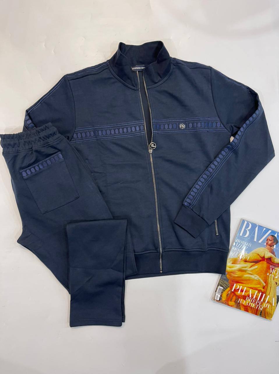 Этот мужской костюм Stefano Ricci — воплощение элегантности и комфорта. Он идеально подойдет для создания стильных образов в повседневном стиле, сочетая в себе высокое качество исполнения и узнаваемый дизайн бренда. Комплект состоит из удобной кофты на молнии и брюк, декорированных фирменными элементами.