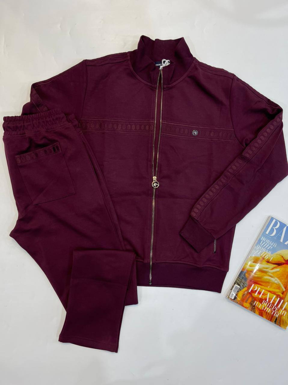 Представляем вашему вниманию элегантный костюм от Stefano Ricci, воплощение итальянского стиля и высокого качества. Данный комплект, состоящий из спортивной кофты на молнии и брюк, идеально подойдет для создания стильных и комфортных образов. Декоративные элементы в виде узоров вдоль рукавов и на груди придают изделию уникальность и изысканность.