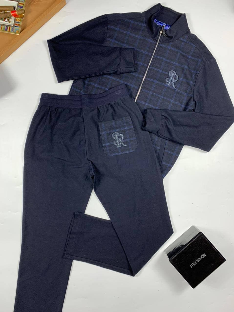 Этот спортивный костюм Stefano Ricci LUX-53963 идеально подходит для ценителей комфорта и стиля. Комплект выполнен в темном оттенке синего, с контрастной клетчатой вставкой на куртке и элегантной вышивкой логотипа бренда на груди и кармане брюк. Эластичный пояс брюк обеспечивает идеальную посадку, а свободный крой куртки на молнии не сковывает движений.