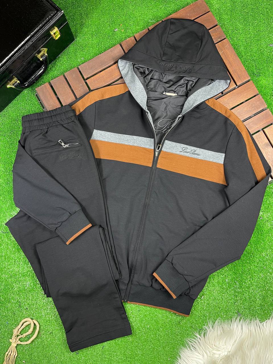 Костюм спортивный Stefano Ricci LUX-66861 представляет собой стильное и комфортное решение для активного образа жизни. Сочетание классического черного цвета с контрастными полосами на куртке придает изделию современный вид. Этот спортивный костюм от Stefano Ricci идеально подходит для повседневного ношения, занятий спортом или путешествий, подчеркивая ваш изысканный вкус.
