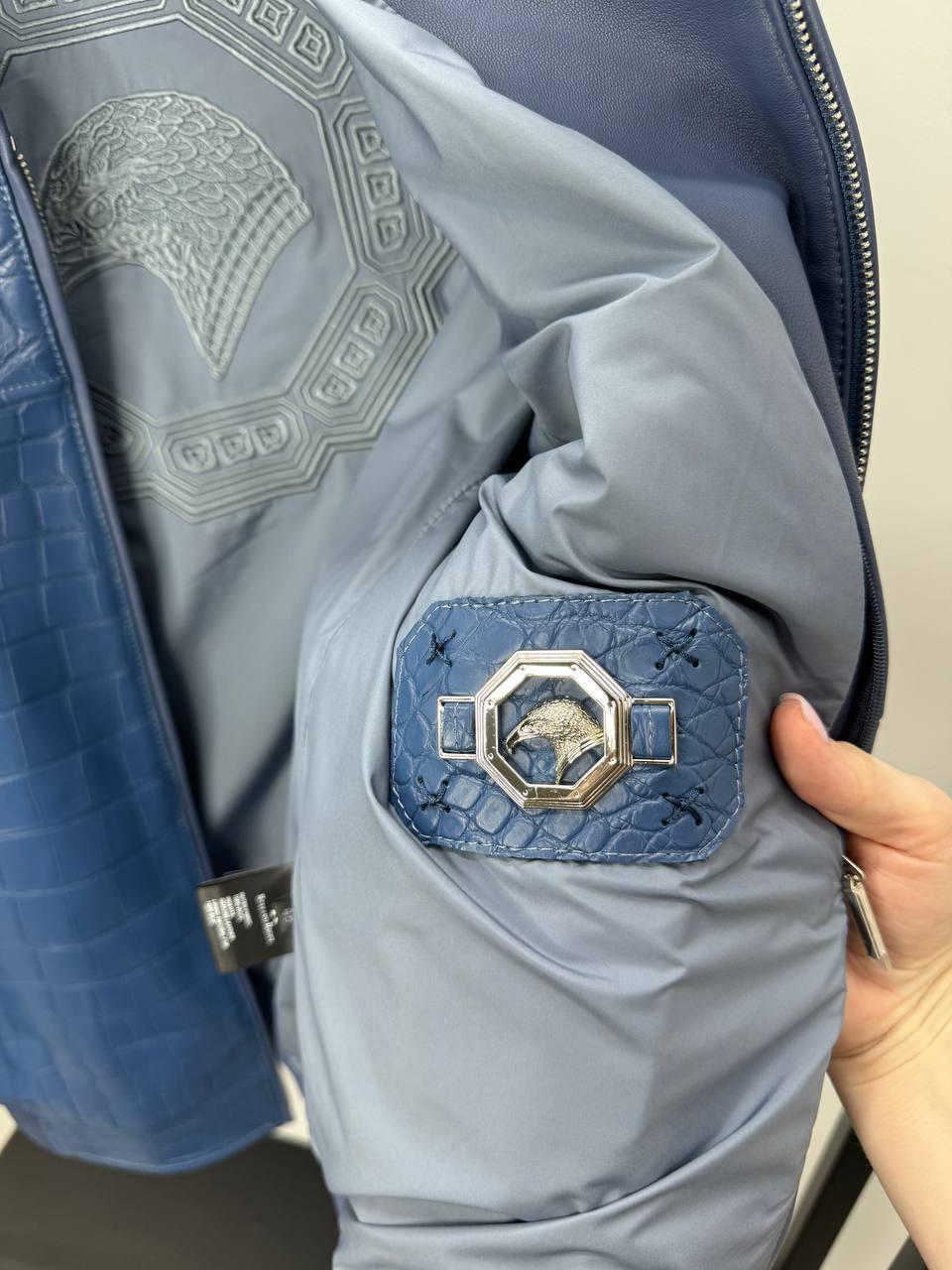 Элегантная кожаная куртка от Stefano Ricci со вставками из кожи крокодила – это воплощение роскоши и стиля. Сочетание высококачественной кожи и экзотической отделки делает эту модель поистине уникальной.