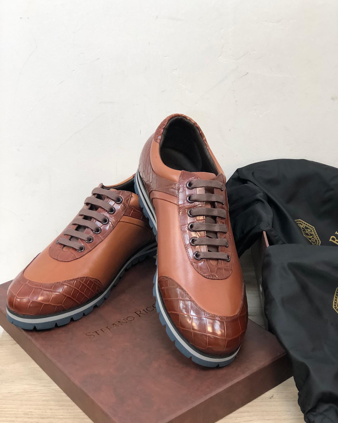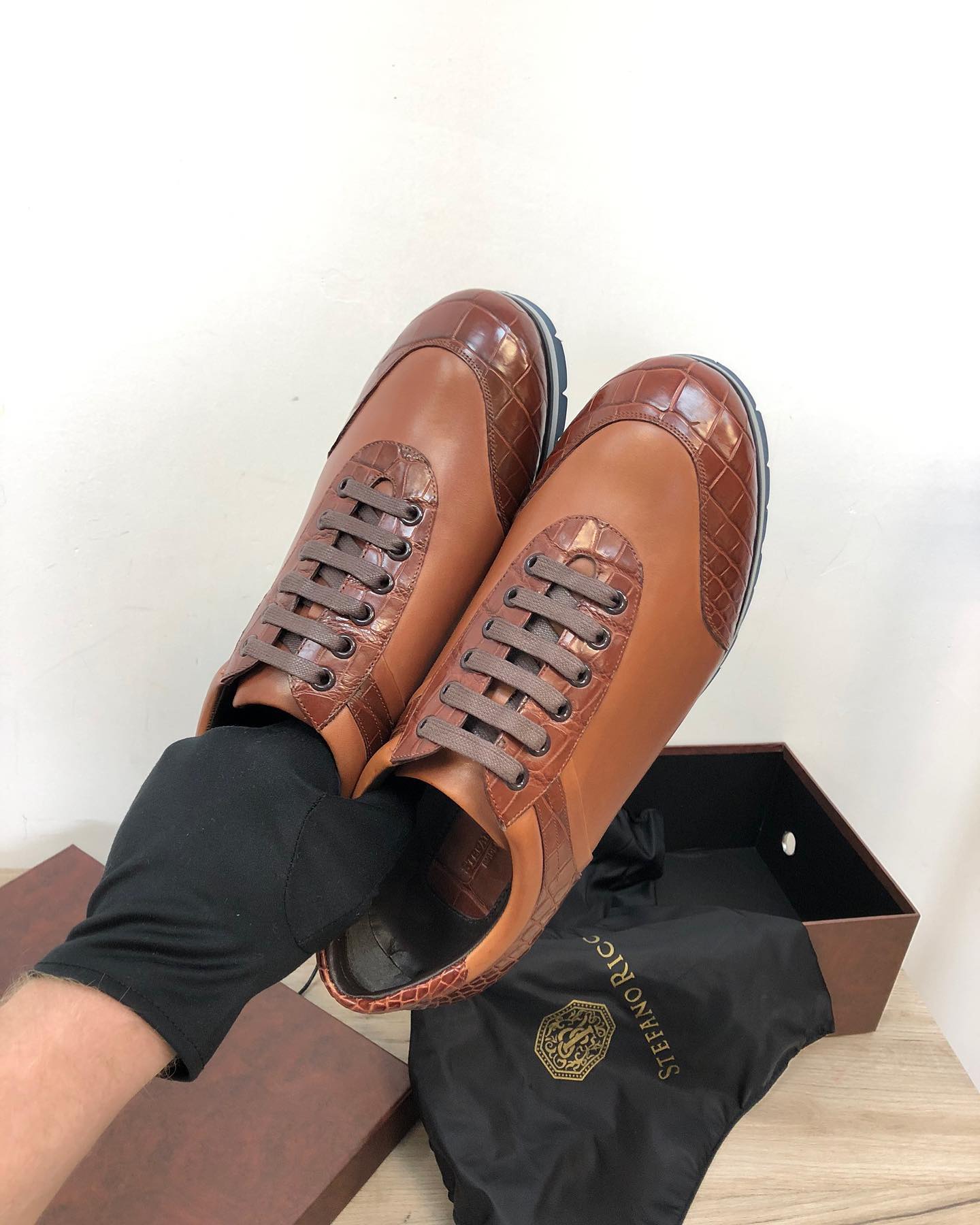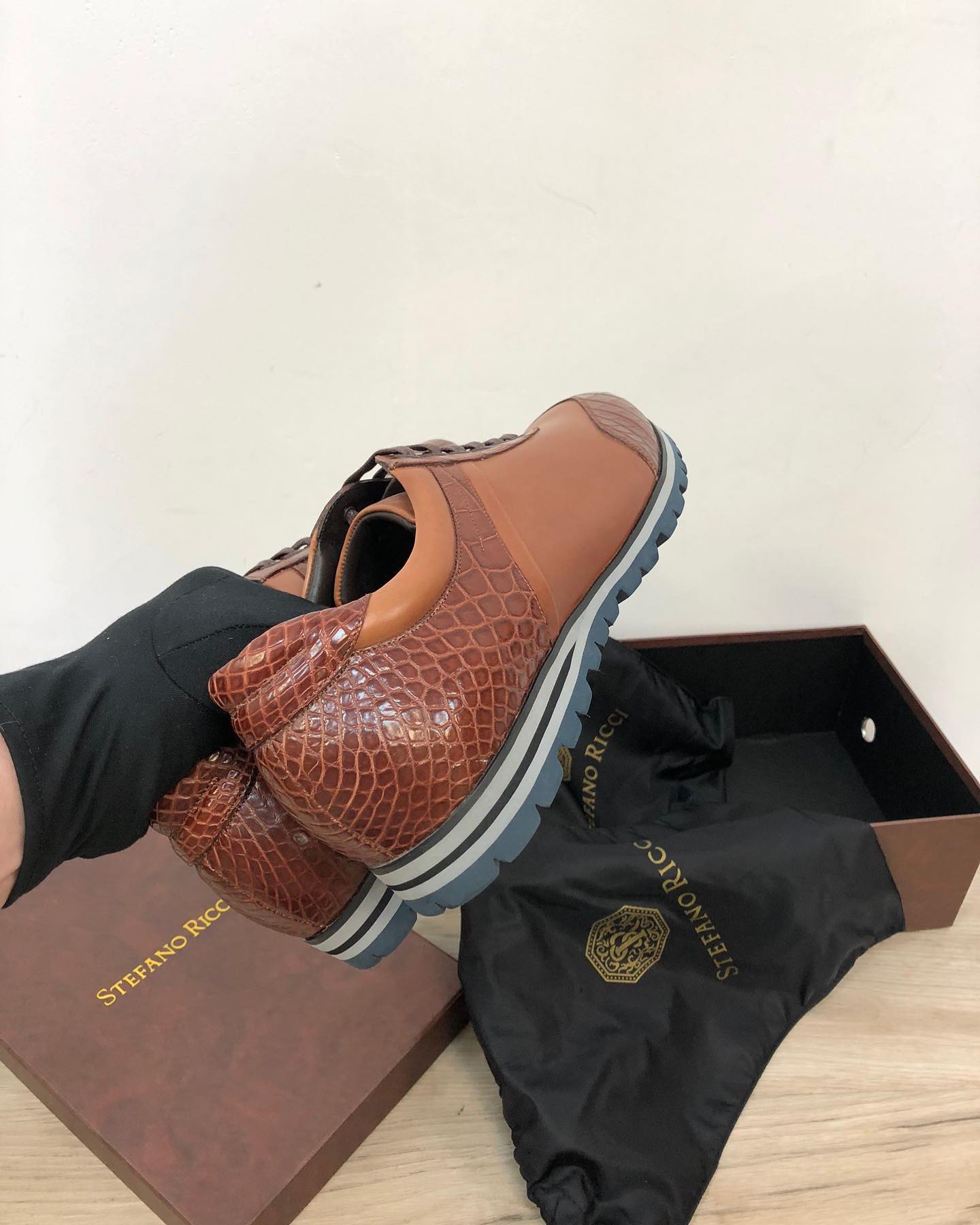 Эти мужские кроссовки Stefano Ricci LUX-35516 представляют собой элегантное сочетание классического дизайна и современных материалов. Их коричневый цвет и детали под крокодила придают обуви роскошный вид, идеально подходящий для создания стильных образов. Отличный выбор для современного мужчины, ценящего качество и утонченность.