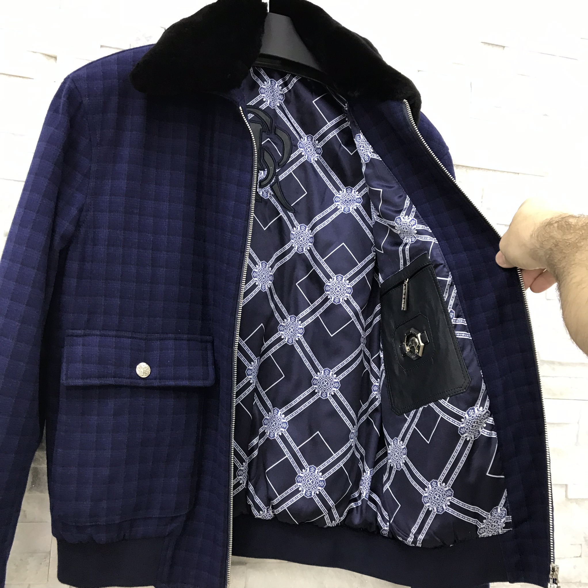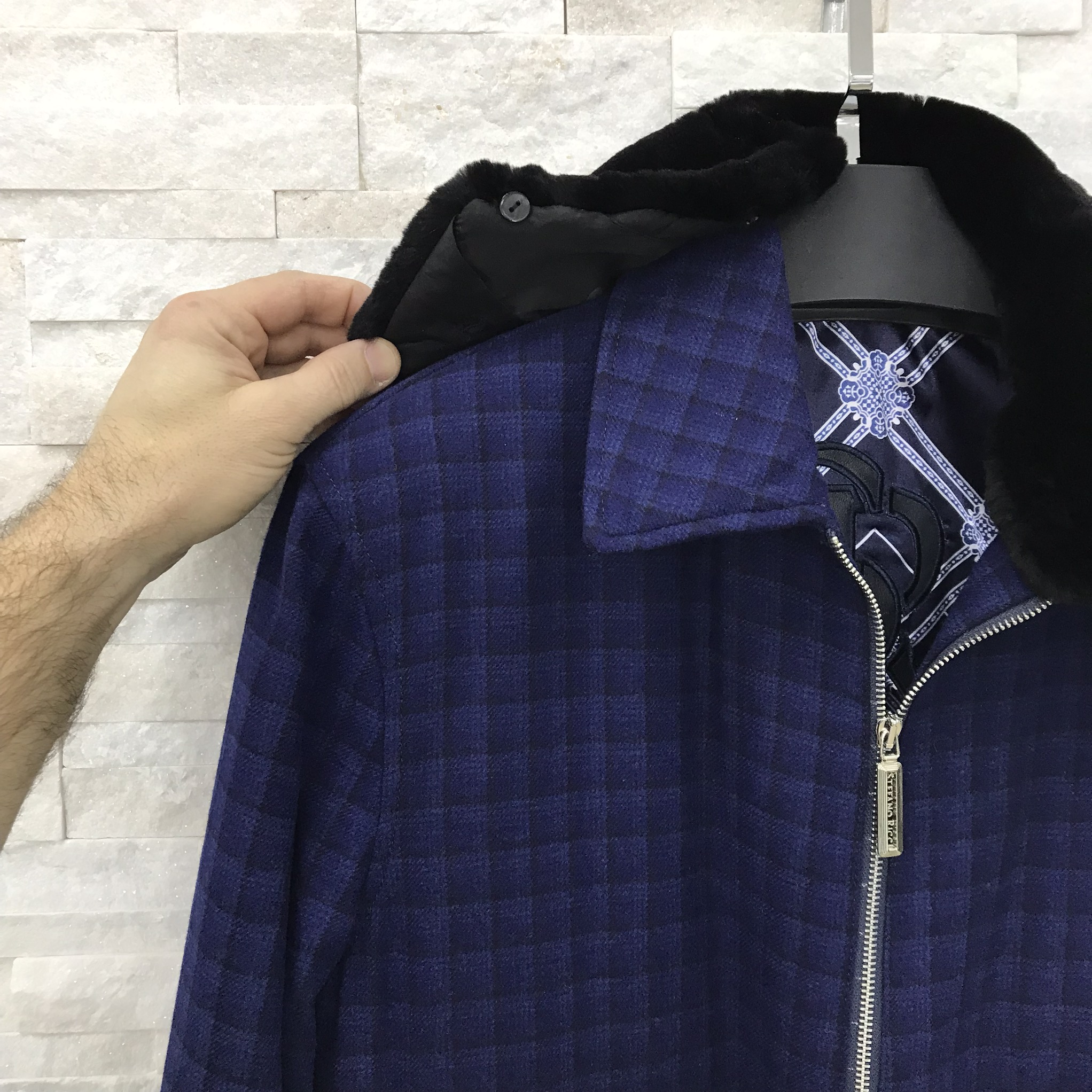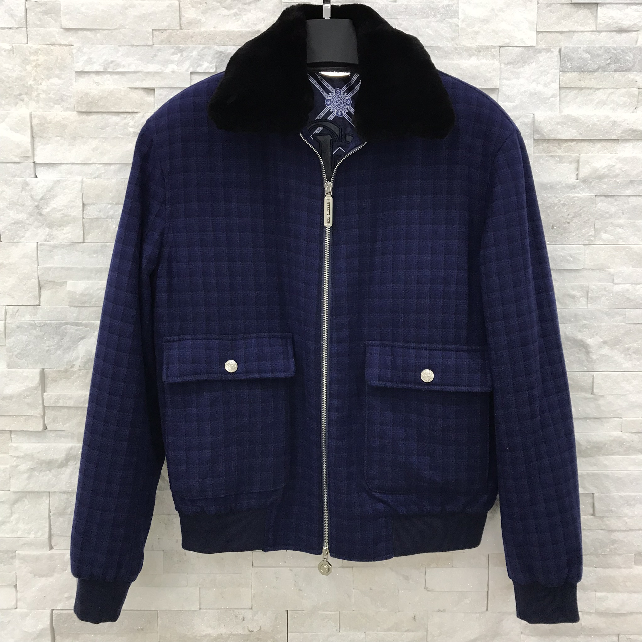 Стильная мужская куртка Stefano Ricci LUX-26538 выполнена в темно-синем цвете с оригинальным узором в виде мелкой клетки. Модель имеет классический прямой крой, меховой воротник, две нагрудные накладные карманы с клапанами и застежкой-молнией. Куртка идеально подходит для создания элегантных и одновременно расслабленных образов в прохладное время года.