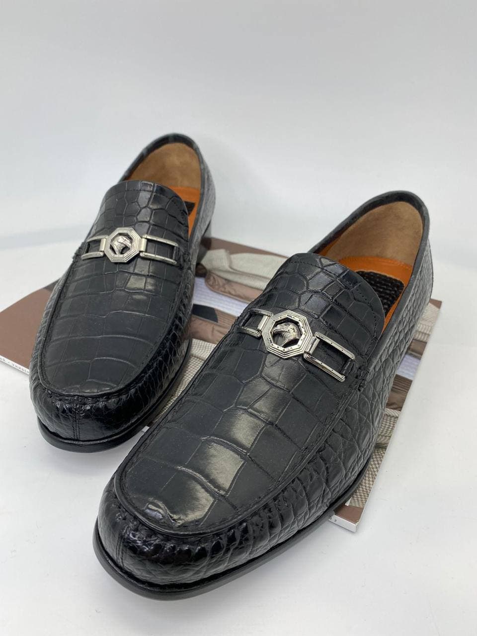 Стильные черные лоферы Stefano Ricci LUX-61883 — это воплощение элегантности и роскоши. Изготовленные из материалов высокого качества, они обладают выразительной текстурой, имитирующей кожу рептилии, и дополнены изысканной металлической пряжкой с логотипом бренда. Эта модель идеально подходит для создания как деловых, так и более расслабленных, но утонченных образов.