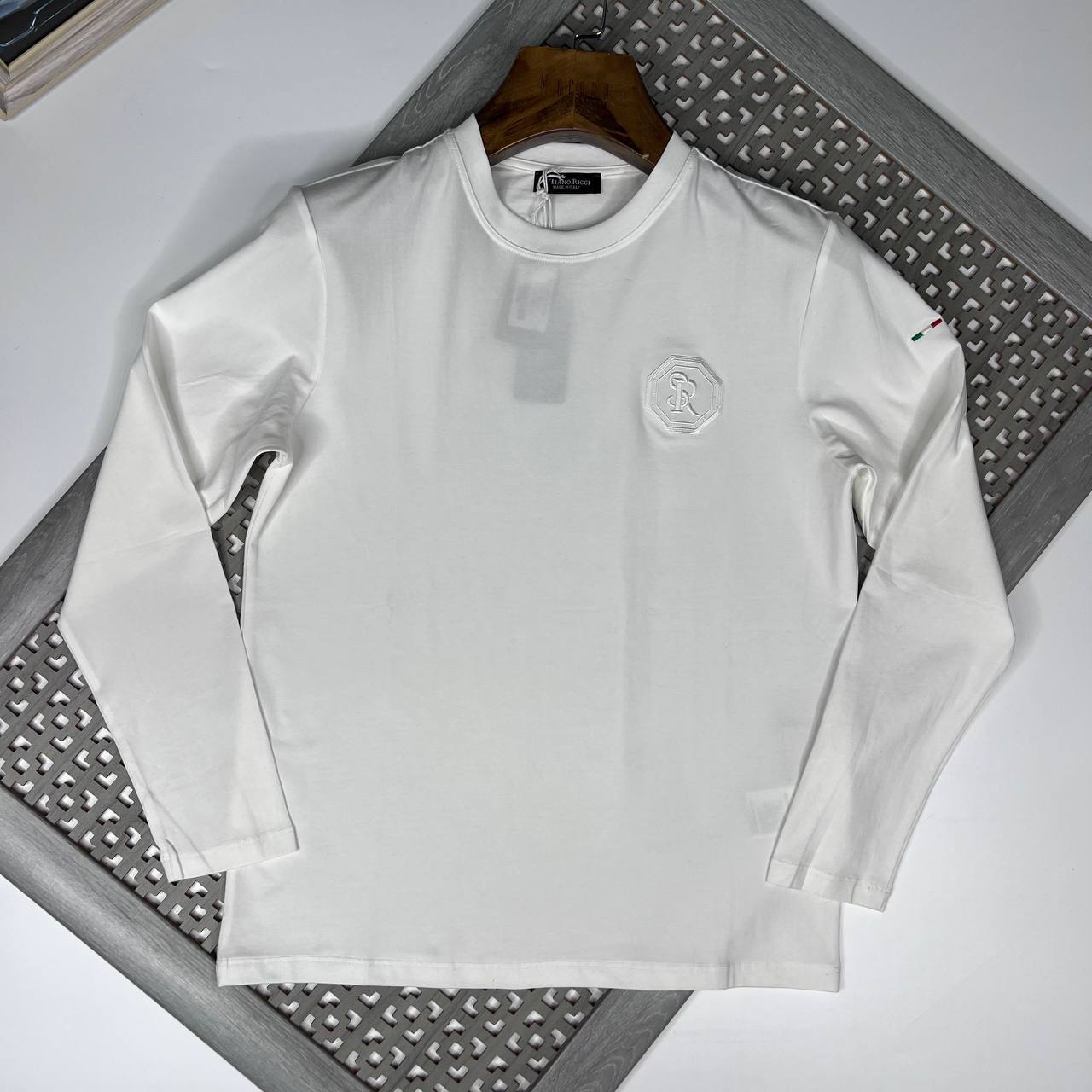 Лонгслив Stefano Ricci LUX-72786 — это элегантный предмет гардероба, выполненный в классическом стиле. Белый лонгслив с длинными рукавами и круглым вырезом горловины. Текстура ткани гладкая, украшен вышитым логотипом на груди и триколором на рукаве. Предназначен для повседневного ношения, а также может быть использован для создания более формальных образов.