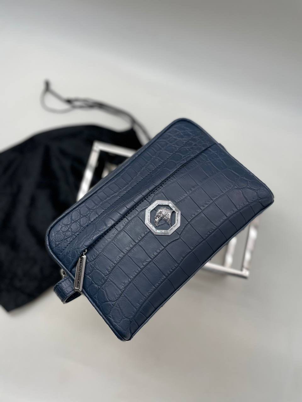 Несессер Stefano Ricci LUX-75060 - это элегантный аксессуар для хранения личных вещей в путешествиях или повседневной жизни. Он выполнен в классическом стиле, сочетая практичность и роскошь. Темно-синий цвет и текстура, напоминающая кожу крокодила, придают ему изысканный вид.