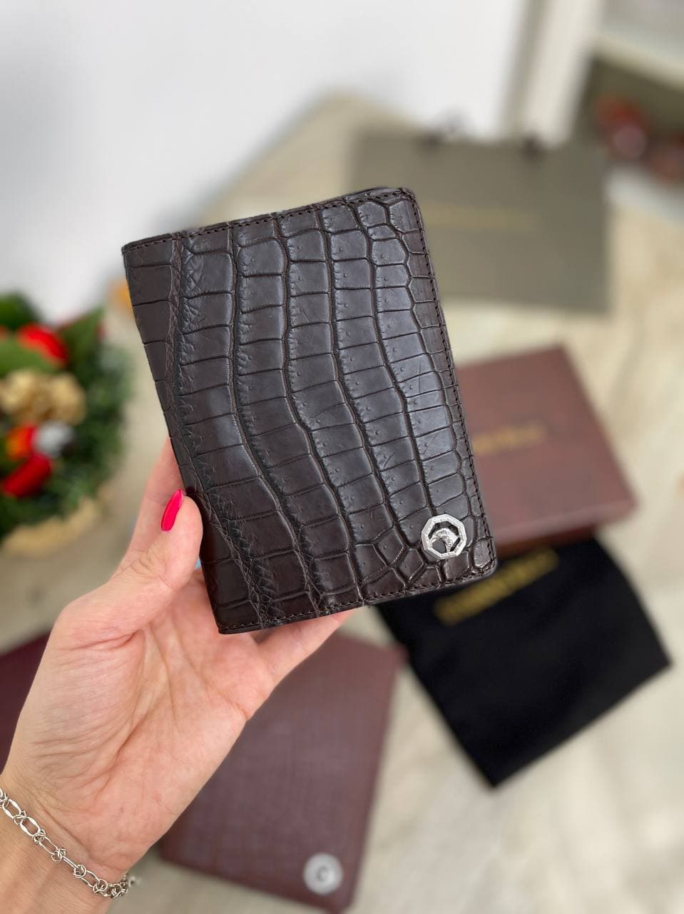 Обложка на паспорт Stefano Ricci LUX-60762 – это изысканный аксессуар, выполненный в классическом стиле, который подчеркнет ваш статус и безупречный вкус. Аксессуар декорирован тиснением под кожу крокодила и элегантным металлическим элементом с логотипом бренда.