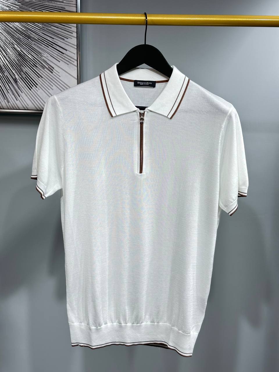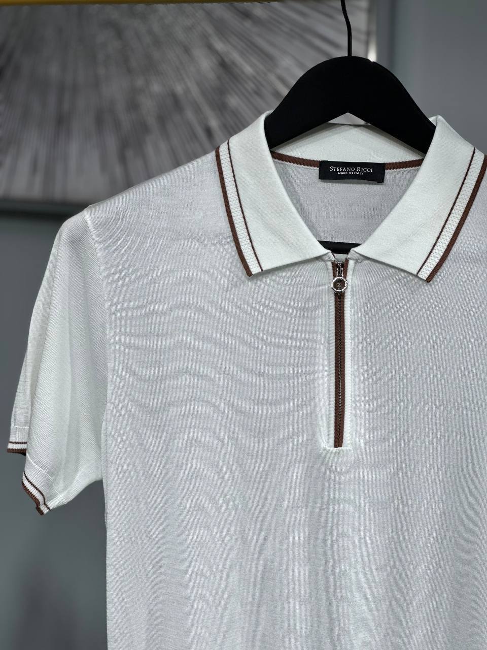 Поло Stefano Ricci LUX-83732 — это элегантное изделие, выполненное в классическом стиле. Белый цвет поло с коричневыми деталями придает ему изысканный вид. Его можно носить как в повседневной жизни, так и для создания более формальных образов.