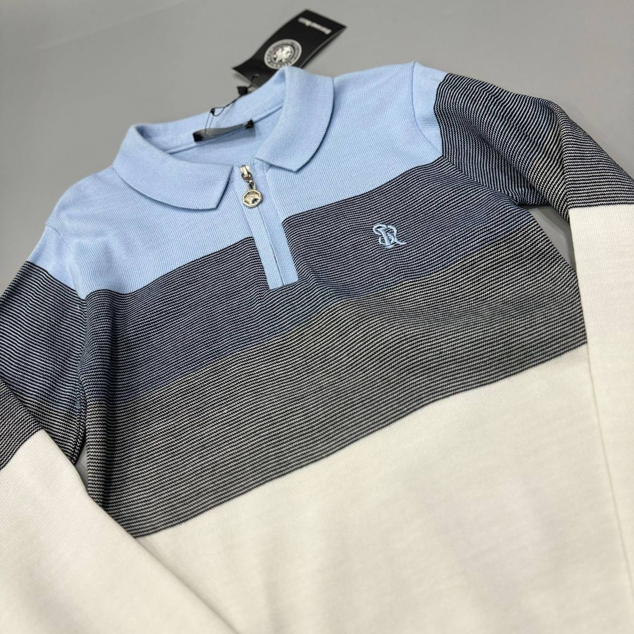 Поло Stefano Ricci LUX-114972 — это стильное поло, выполненное в сочетании голубого, темно-синего и белого цветов. Этот элемент гардероба сочетает в себе элегантность и современный дизайн, что делает его идеальным для различных случаев.