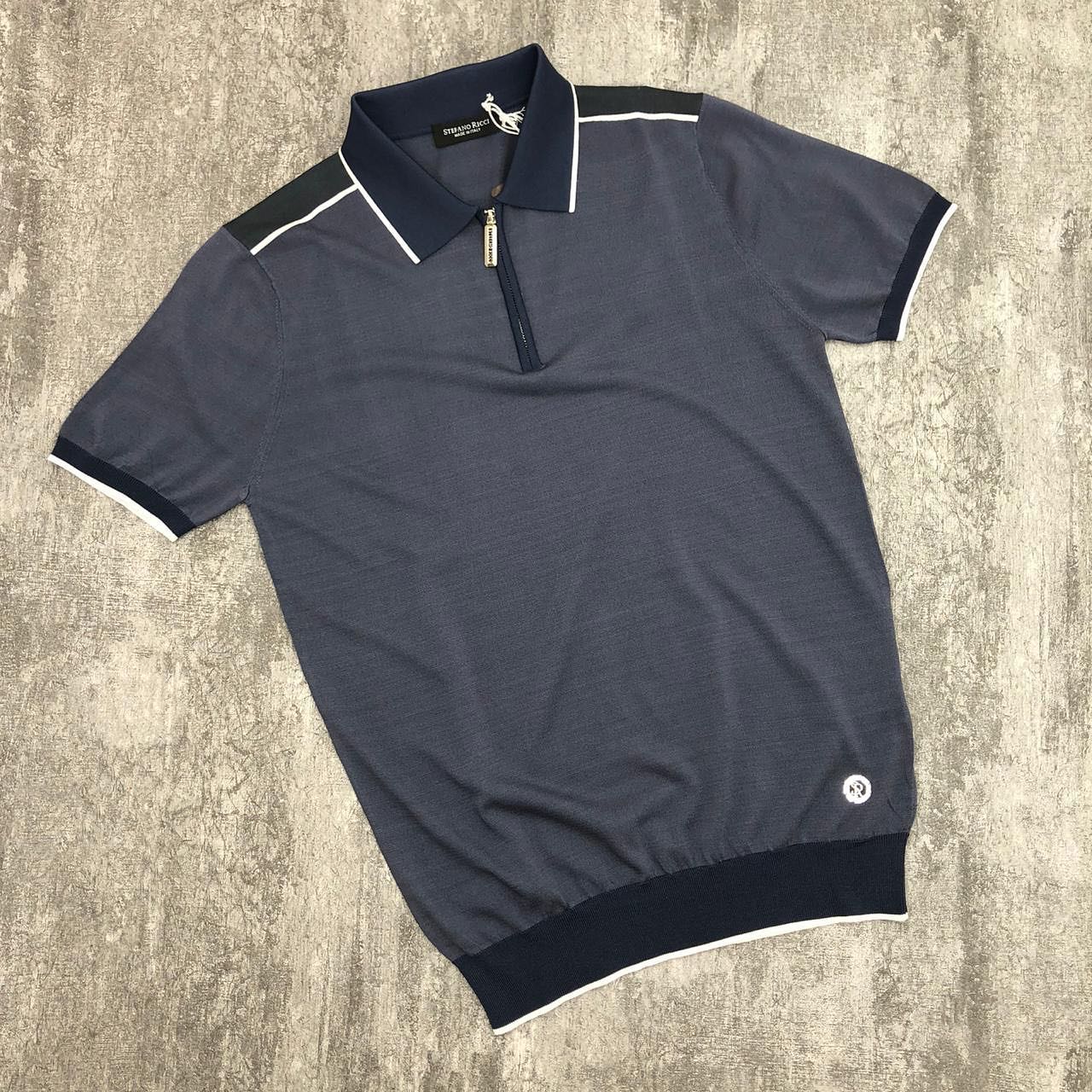 Это мужское поло Stefano Ricci LUX-31827, выполненное в темно-синем цвете, сочетает элегантность с повседневным комфортом. Модель имеет приталенный крой, короткие рукава с контрастной отделкой и воротник-поло на молнии. Декоративные вставки на плечах и фирменный логотип добавляют изделию эксклюзивности.