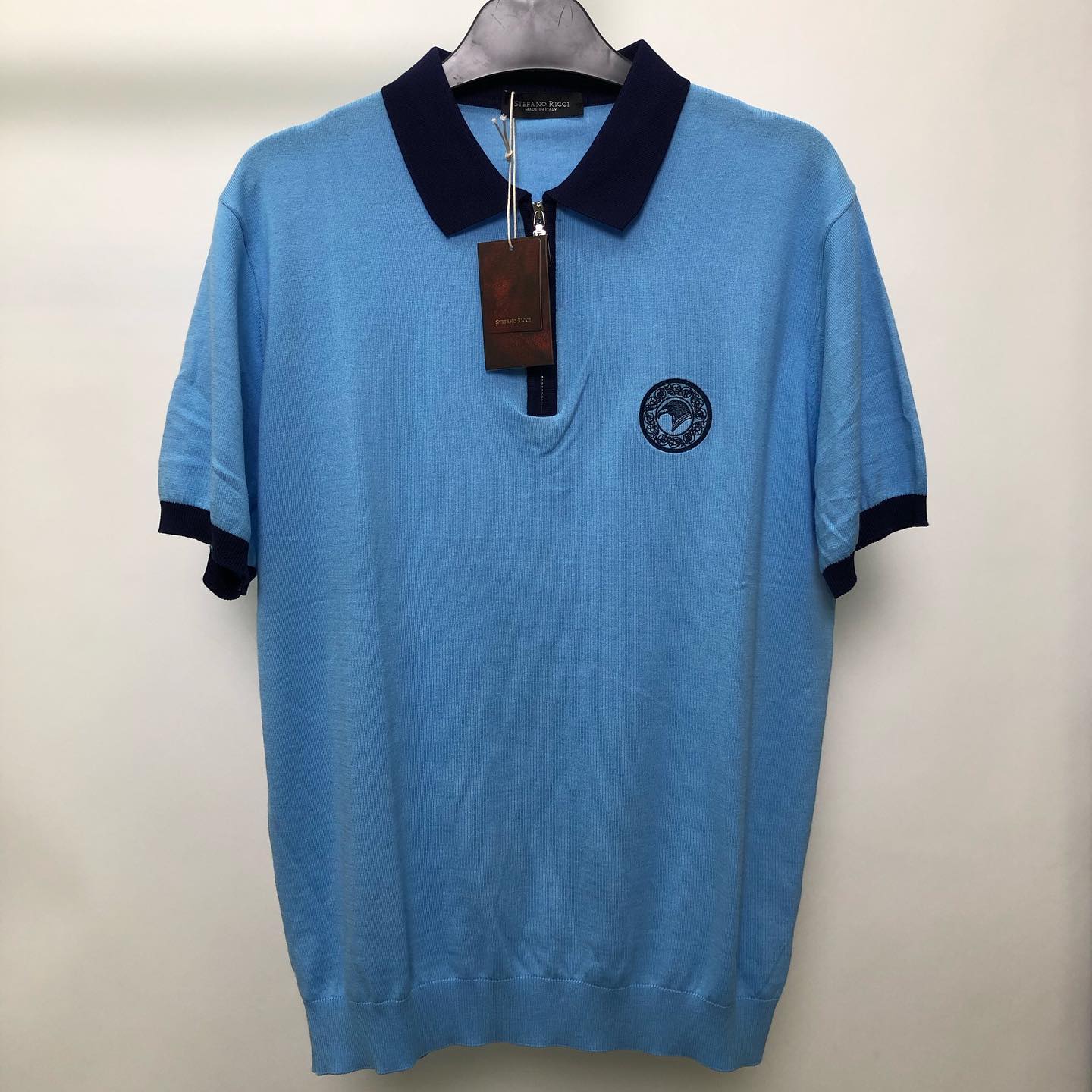 Поло Stefano Ricci LUX-44855 — это стильный и элегантный элемент мужского гардероба, выполненный в классическом стиле. Однотонное поло ярко-голубого цвета с контрастным темно-синим воротником и манжетами создает изысканный образ. Удобная застежка на молнии и вышитый логотип бренда добавляют изделию эксклюзивности, делая его идеальным выбором для создания как повседневных, так и более официальных ансамблей.