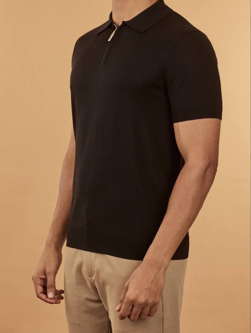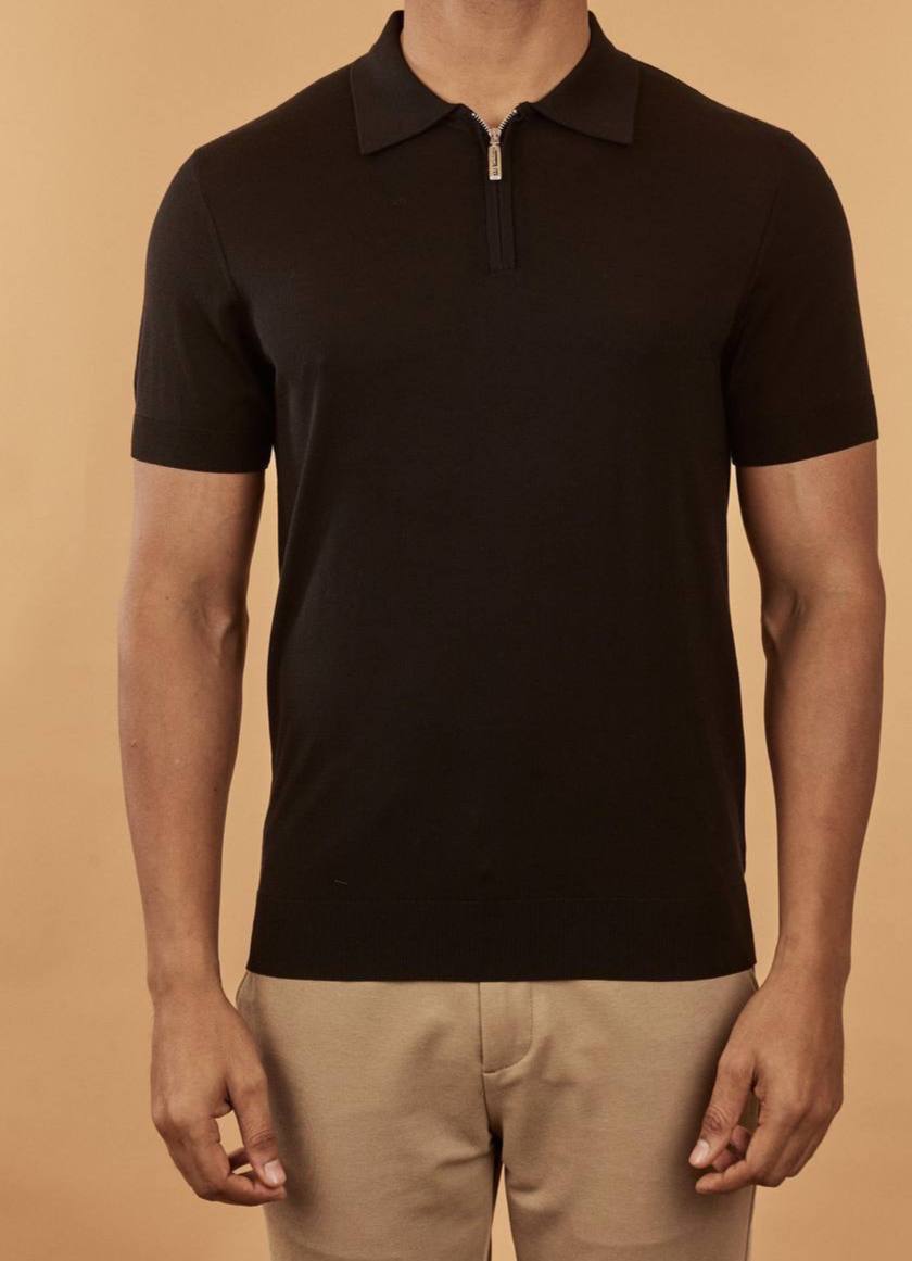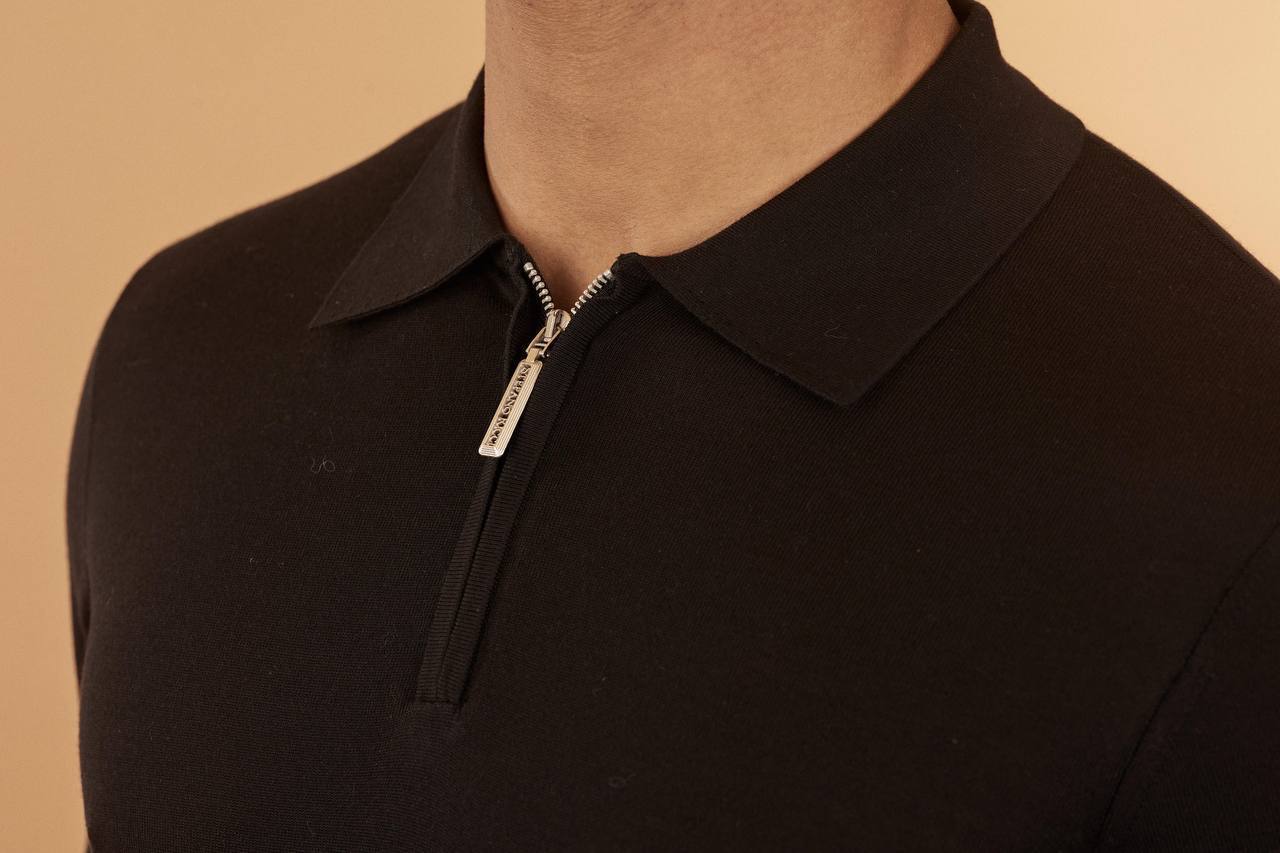 Поло Stefano Ricci LUX-116170, представленное на изображении, выполнено в классическом стиле с короткими рукавами и отложным воротником. Его минималистичный дизайн, с темным цветом, создает элегантный и утонченный образ, подходящий для различных случаев.