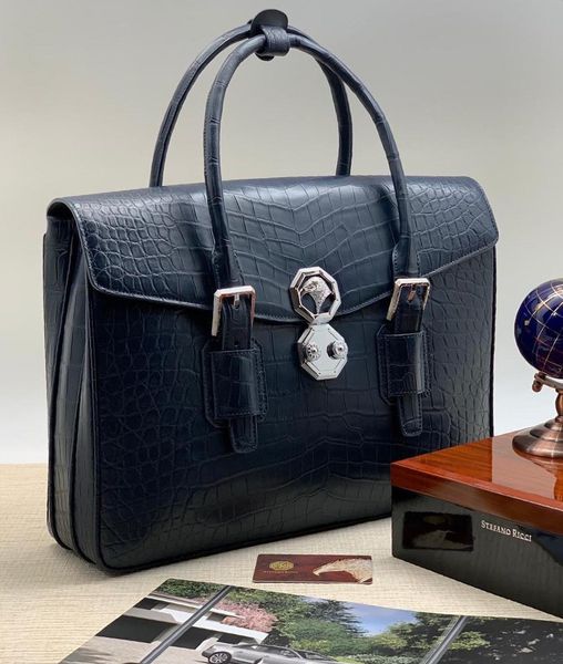 Портфель Stefano Ricci LUX-44977 представляет собой элегантный аксессуар в классическом стиле, выполненный с акцентом на роскошь и качество. Его текстура, имитирующая кожу крокодила, и элегантные детали делают его идеальным выбором для делового человека, ценящего изысканность.