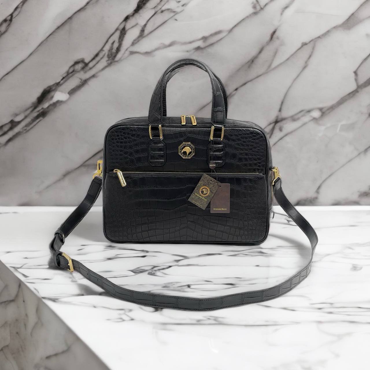 Портфель из натуральной кожи крокодила Stefano Ricci LUX-99563 – это элегантный аксессуар для деловых людей. Чёрный цвет и текстура кожи крокодила придают портфелю роскошный и узнаваемый вид. Его можно использовать как для работы, так и для важных встреч, подчеркивая статус владельца.
