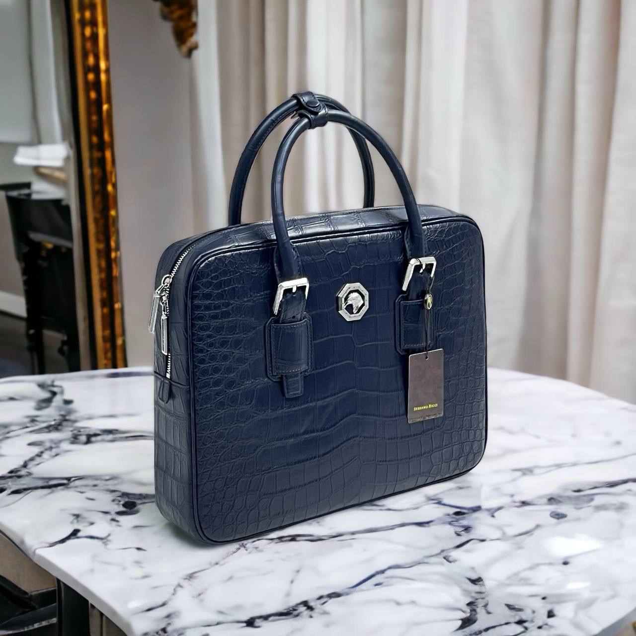 Портфель из натуральной кожи крокодила Stefano Ricci LUX-99803 — это роскошный аксессуар для деловых людей. Темно-синий портфель выполнен из натуральной кожи крокодила с характерной текстурой. Дизайн портфеля сочетает в себе элегантность и функциональность, что делает его идеальным для повседневного использования.