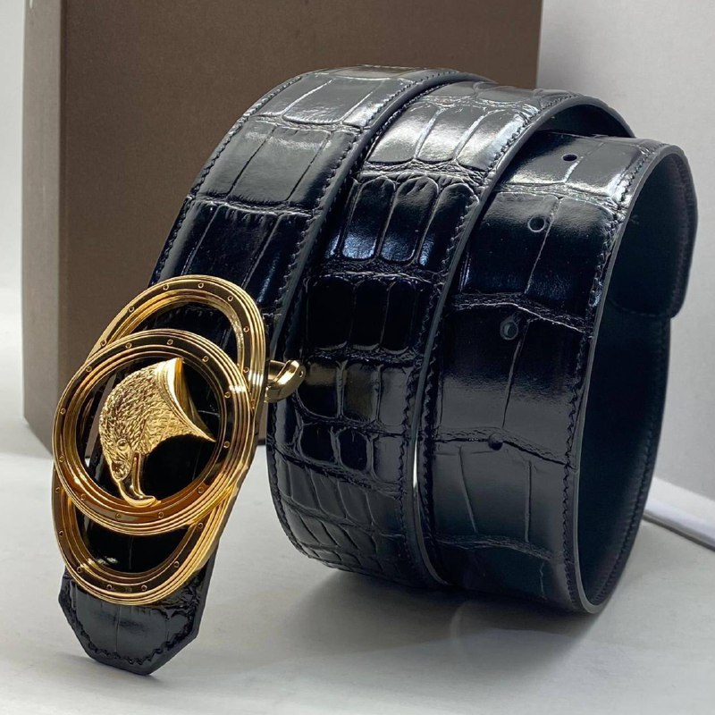 Ремень Stefano Ricci LUX-50347 представляет собой изысканный мужской аксессуар, выполненный в классическом стиле. Изделие обладает текстурой, имитирующей кожу крокодила, что придает ему роскошный и статусный вид. Массивная золотистая пряжка с изображением головы орла является ярким акцентом, подчеркивающим эксклюзивность изделия. Этот ремень идеально дополнит элегантный образ.