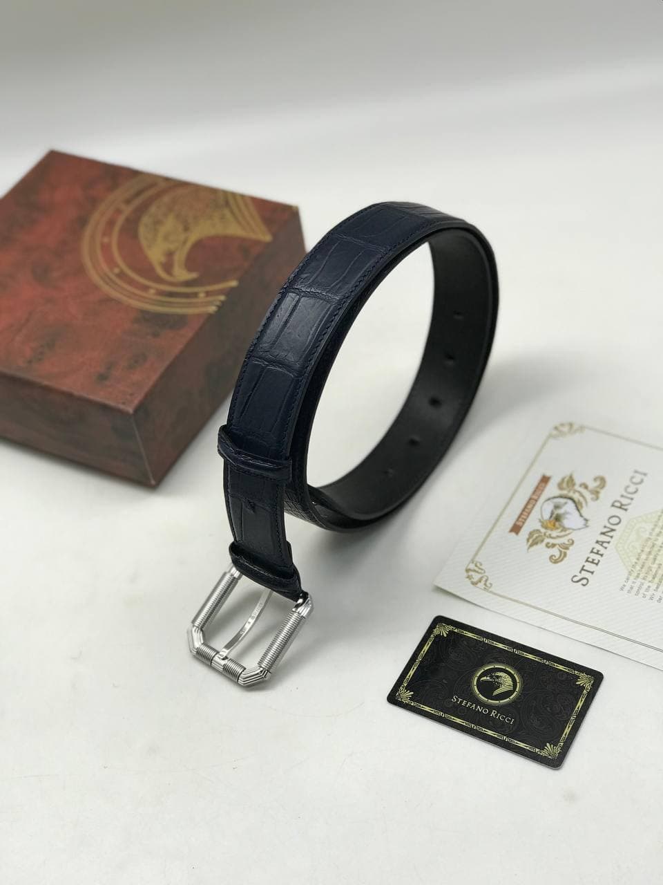 Ремень Stefano Ricci LUX-61731 представляет собой элегантный аксессуар, выполненный в классическом стиле. Изделие с тиснением под кожу крокодила, окрашенное в глубокий темно-синий цвет, идеально дополнит как деловой, так и повседневный образ. Пряжка из серебристого металла с оригинальным дизайном добавляет ремню особой изысканности, подчеркивая статус владельца.