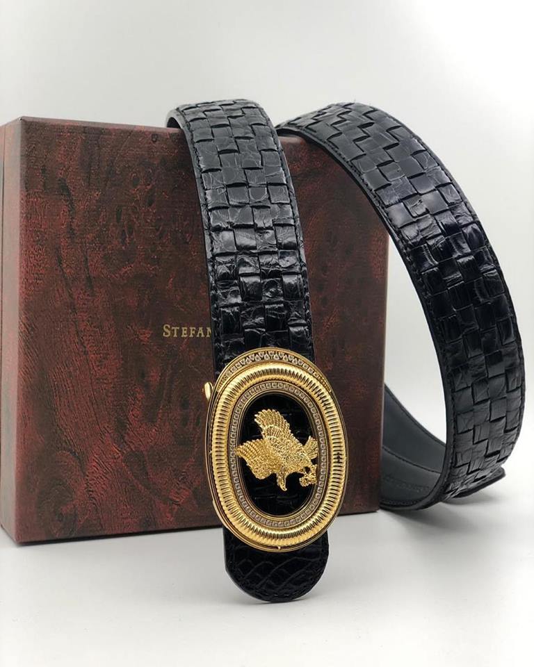Ремень мужской Stefano Ricci LUX-11103 — это элегантный аксессуар, подчеркивающий статус и изысканный вкус его обладателя. Изготовленный в Италии, он отличается роскошным дизайном и безупречным качеством. Сочетание плетеной фактуры ремня с массивной золотой пряжкой, украшенной изображением птицы, придает изделию особую выразительность. Этот ремень станет завершающим штрихом как для делового, так и для элегантного повседневного образа.