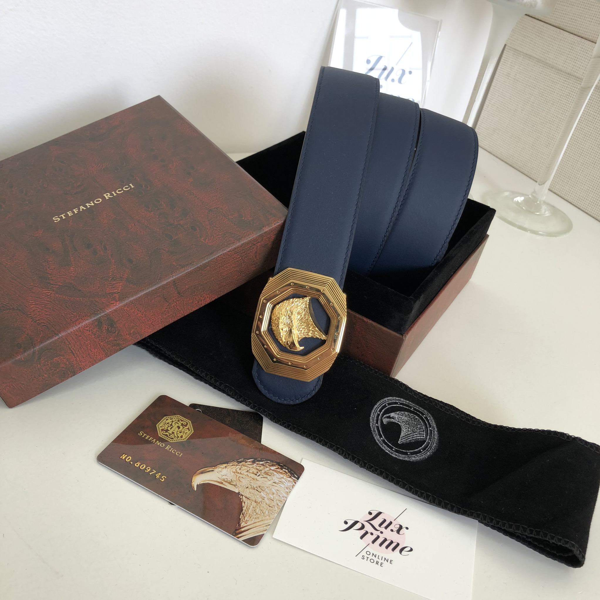 Ремень мужской Stefano Ricci LUX-17882 – это воплощение итальянской роскоши и безупречного стиля. Этот аксессуар, выполненный в глубоком синем цвете, идеально дополнит ваш деловой или повседневный образ, придавая ему изысканность. Элегантная пряжка с золотистым декором в виде головы орла станет ярким акцентом, подчеркивая ваш статус и утонченный вкус.