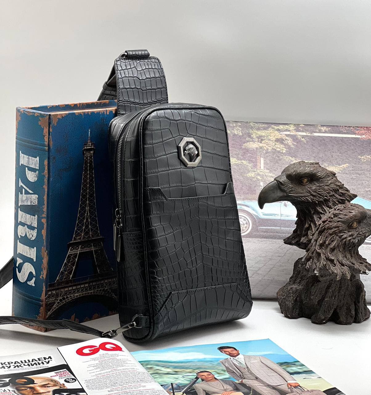 Сумка-слинг Stefano Ricci LUX-58268 выполнена в элегантном черном цвете с фактурой под крокодила, что придает ей роскошный и статусный вид. Этот стильный аксессуар от Stefano Ricci идеально подходит для современного мужчины, ценящего качество и изысканный дизайн.