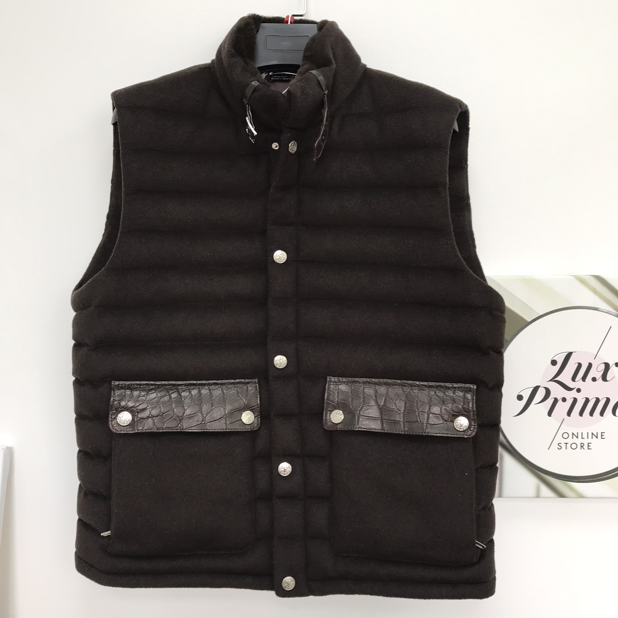 Стильный мужской жилет Stefano Ricci LUX-20214, выполненный в классическом дизайне, станет превосходным дополнением к повседневному или более формальному образу. Темный оттенок и стеганая текстура создают элегантный вид, а детали из кожи аллигатора придают изделию роскошный акцент. Этот жилет идеально подходит для прохладной погоды, обеспечивая комфорт и тепло.