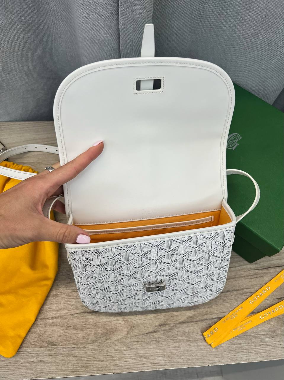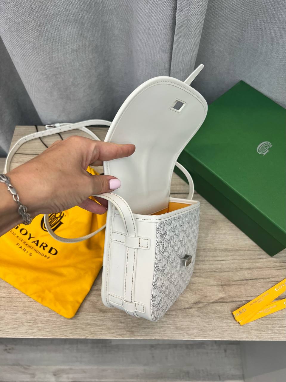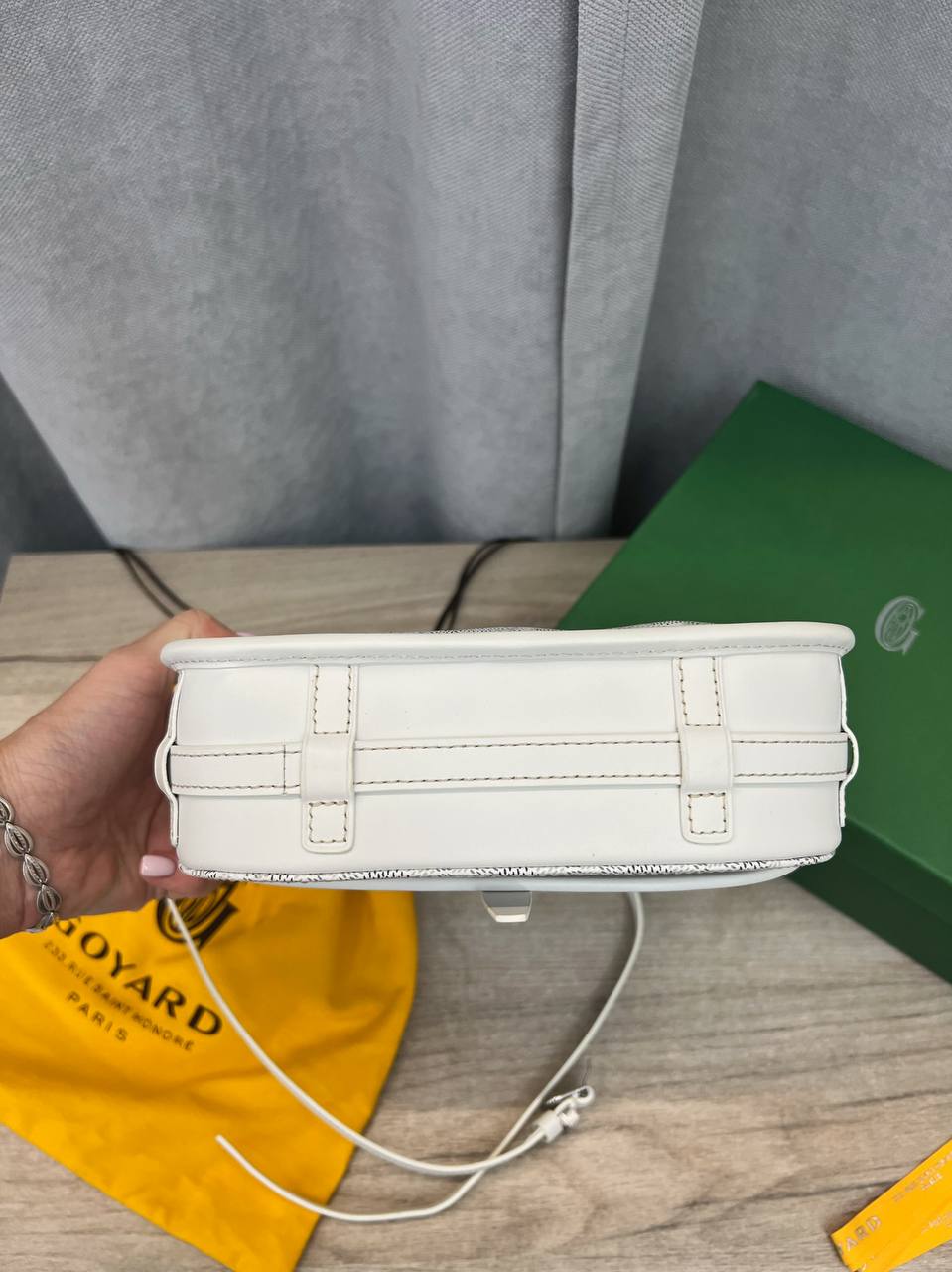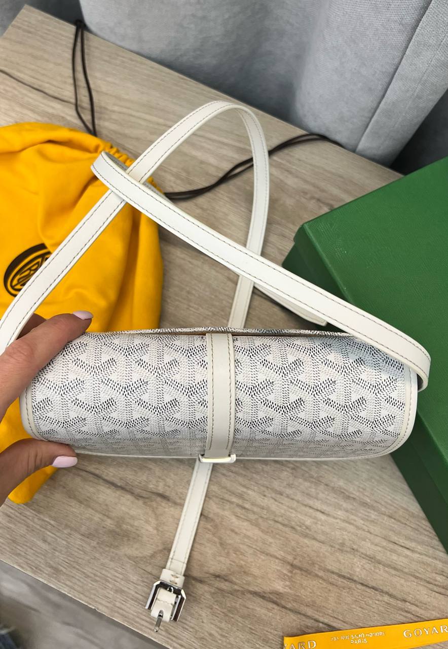 Сумка Goyard LUX-89108 — это стильная сумка через плечо, выполненная в узнаваемом дизайне бренда. Она сочетает в себе элегантность и функциональность, подчеркивая индивидуальность своего владельца. Белый цвет сумки с фирменным узором Goyard, делает её узнаваемой и подходящей для различных образов.