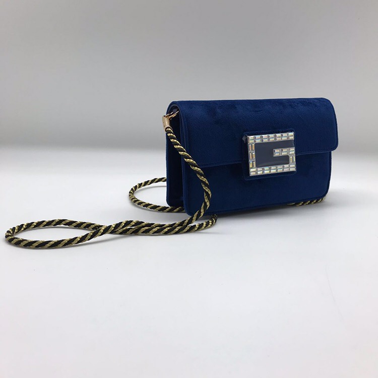 Эта элегантная женская сумка СЖ-023 от Luxe-Crime в глубоком синем цвете станет стильным дополнением к вечерним и коктейльным образам. Бархатистая текстура материала придает ей роскошный вид, а контрастная плетеная ручка с золотистыми и черными нитями добавляет изысканности. Декоративный элемент в виде буквы "G", инкрустированный сверкающими кристаллами, подчеркивает ее эксклюзивность. Идеальный выбор для особых случаев.
