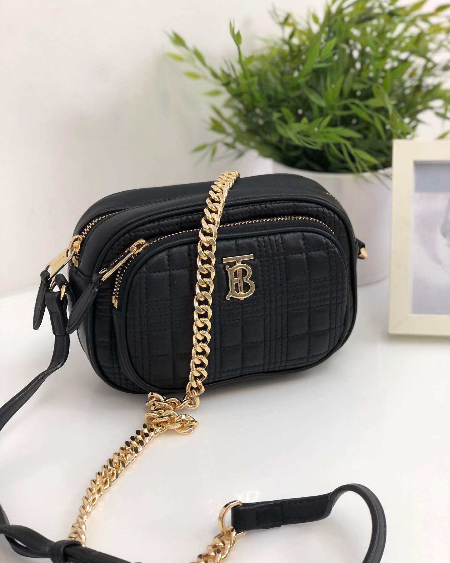 Сумка женская Burberry LUX-41689 выполнена в элегантном дизайне, идеально дополняющем как повседневные, так и вечерние образы. Ее стеганая поверхность с клетчатым узором и золотистой фурнитурой, включая узнаваемый логотип бренда, придает изделию роскошный вид. Компактная форма делает ее удобной для ношения через плечо или на плече, вмещая все необходимое.