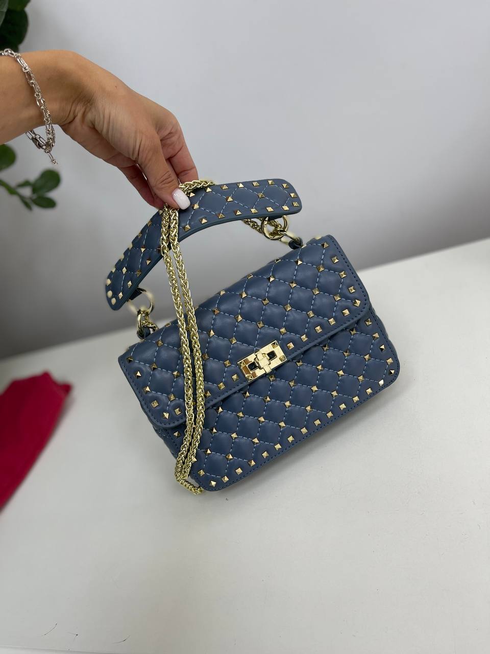 Женская сумка Valentino LUX-73224 — стильный аксессуар, который подчеркнет индивидуальность. Сумка выполнена в стеганом дизайне с металлическими заклепками. Ее универсальный цвет позволяет сочетать сумку с различными образами.