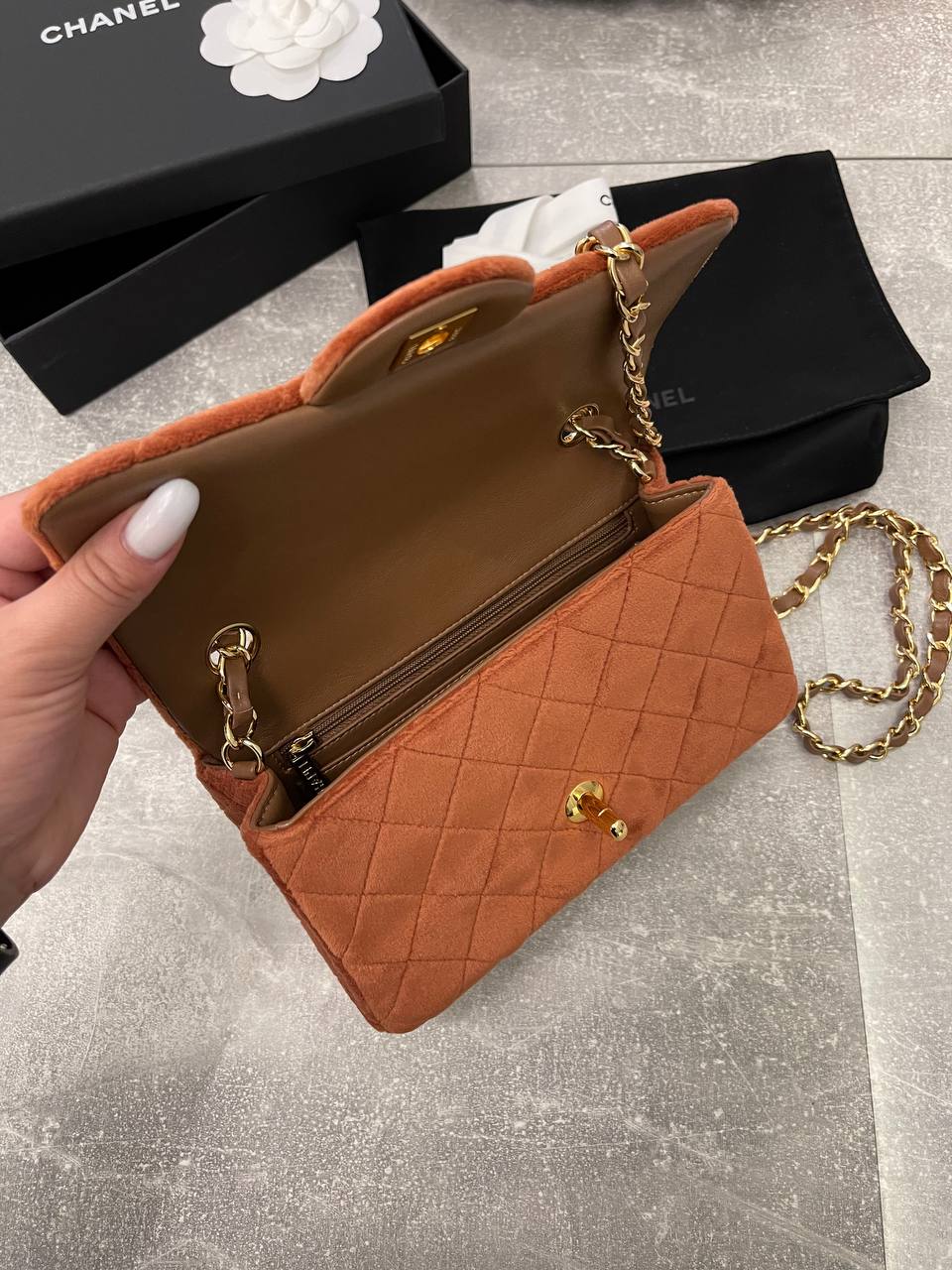 Сумка женская Chanel LUX-98612 представляет собой стильную сумку-клатч, выполненную в стеганом дизайне. Классический стиль и мягкие формы делают ее подходящей для различных образов. Сумка представлена в рыжем цвете с золотистой фурнитурой.