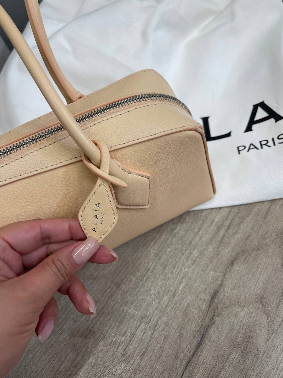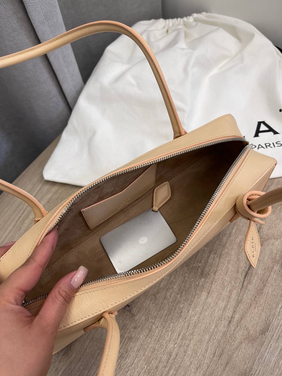 Женская сумка Alaia LUX-107857 – элегантный аксессуар для современных женщин. Сумка выполнена в нежном бежевом цвете, имеет гладкую текстуру, что придает ей изысканный вид. Идеально подходит для повседневного использования, дополняя любой образ.