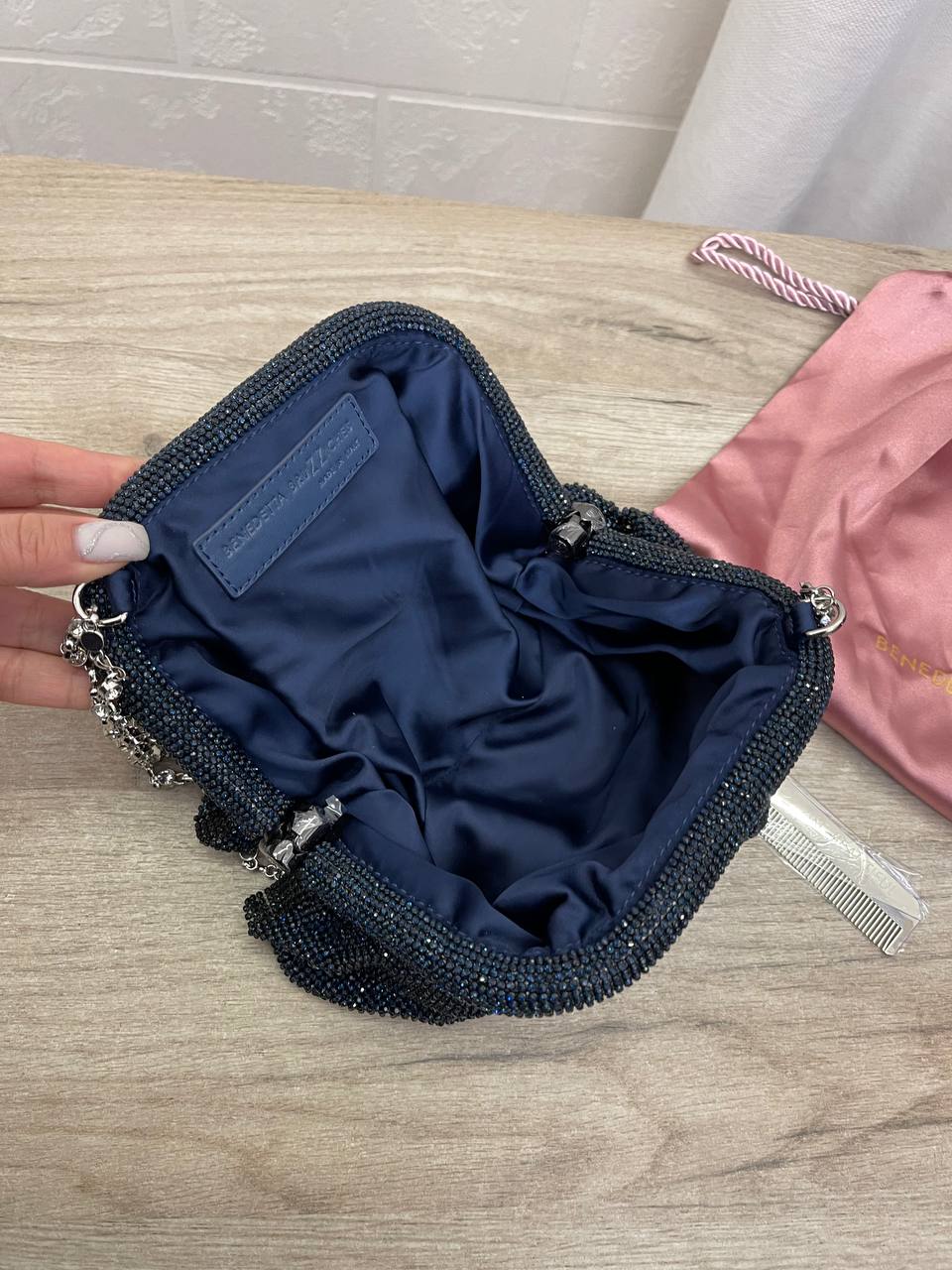 Сумка женская Benedetta Bruzziches LUX-100987 выполнена в вечернем стиле. Тёмно-синий цвет и мерцающая текстура создают элегантный и праздничный образ. Аксессуар можно использовать для дополнения вечерних нарядов или для особых мероприятий.